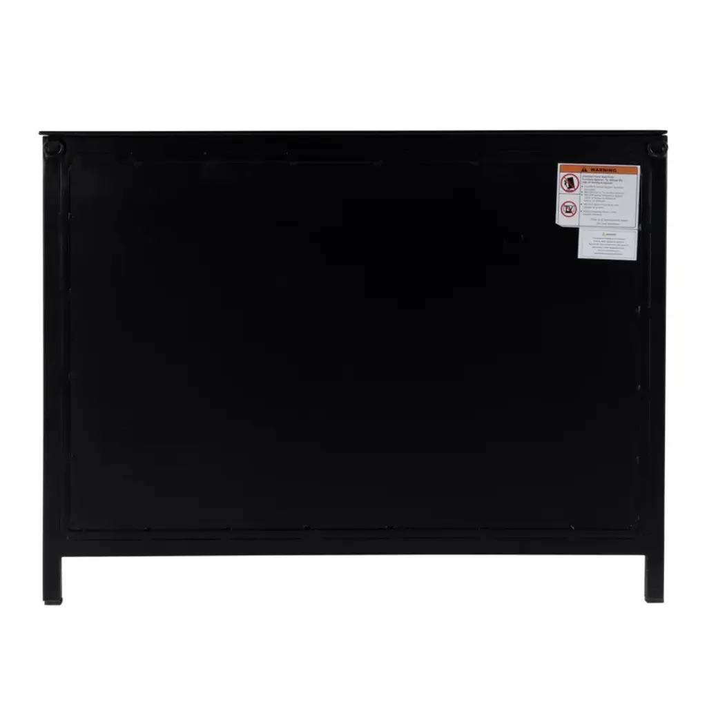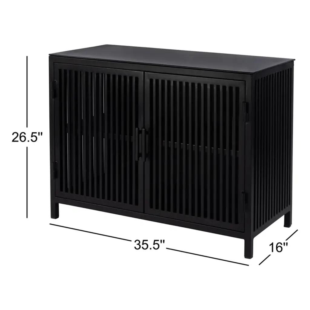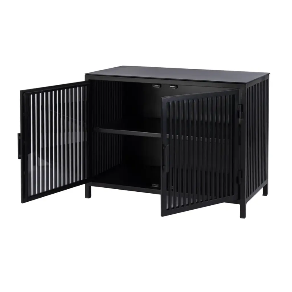 This Worthington sleek and modern 2 door iron and glass storage cabinet offers a stunning combination of functionality and style. Featuring a polished finish and minimalist design, it adds sophistication to any space. The interior fixed shelf provides practical storage, making it ideal for home or commercial use. Its sturdy construction and stain-resistant lacquer ensure long-lasting beauty, while the compact size fits effortlessly into smaller spaces.