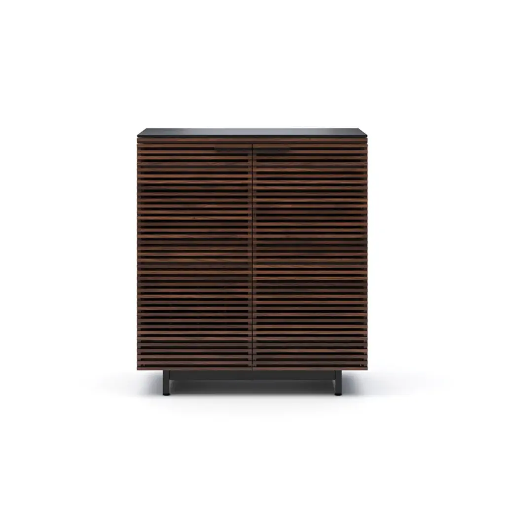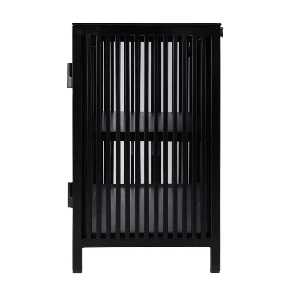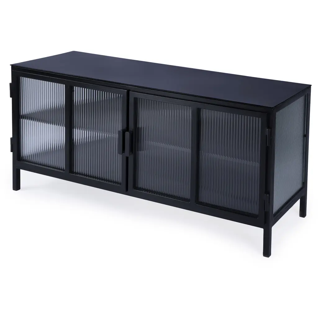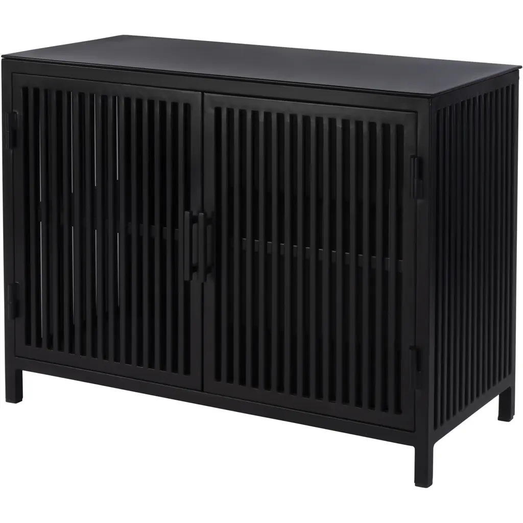 This Worthington sleek and modern 2 door iron and glass storage cabinet offers a stunning combination of functionality and style. Featuring a polished finish and minimalist design, it adds sophistication to any space. The interior fixed shelf provides practical storage, making it ideal for home or commercial use. Its sturdy construction and stain-resistant lacquer ensure long-lasting beauty, while the compact size fits effortlessly into smaller spaces.