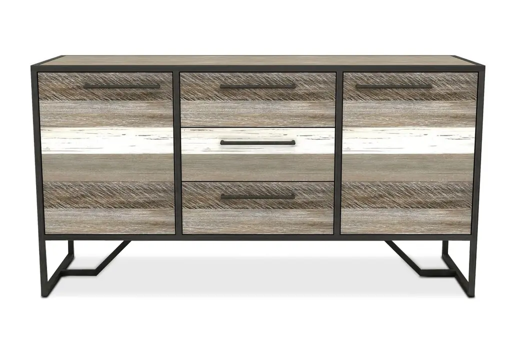 We have a sneaking suspicion you're going to love the Bandit Ave Collection. Various tones, hues, and textures give this collection a stand-out quality that your guests will want to steal. The iconic, multi-tonal look is created by staining individual planks of solid Acacia in multiple finishes. The black metal frame makes for a sleek profile. The Bandit Ave Collection is definitely one you'll want to pick out of our lineup! The Bandit Ave Credenza features two cabinets and three drawers so that you can maximize your storage potential! Plenty of room to fit all the items from your recent heists, you little bandit!