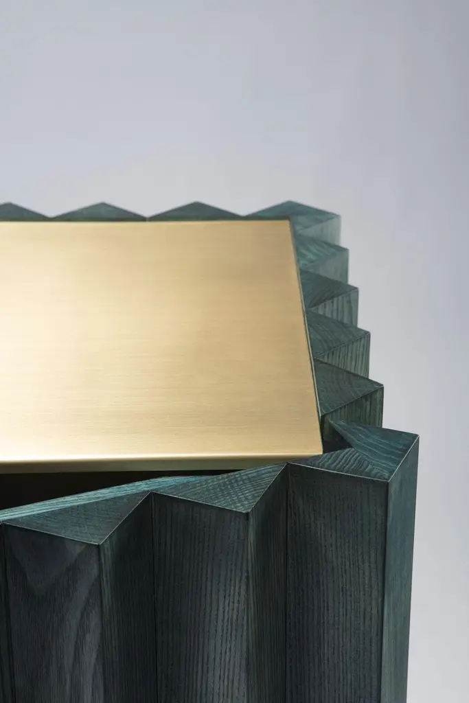 A journey through the ancient history of earth, to search the origin of earth’s surface creation. Most of the oceanic crust is made up of an incredibly resistant volcanic rock: basalt. This rock is generated by the rapid cooling of the lava flows, basalt is often visible in its columnar conformation, examples are visible all over the world, spectacular formations with an artificial appearance. Basalto is a collection of containers inspired by the sculptural ability of nature itself, it consists of two monolithic cabinets with unique shapes.All cabinets are available in two different finishes.The matt lacquered version enanches the monolithic aspect of the furniture. The aniline finish version highlights the natural grain of the wood.Un viaggio attraverso l’antica storia della terra, alla ricerca dell’origine stessa della creazione della superficie terrestre. Gran parte della crosta oceanica è costituita dauna roccia vulcanica incredibilmente resistente: il basalto. Questa roccia si genera grazie al rapido raffreddamento delle colate laviche, il basalto è spesso visibile nelle sua conformazione colonnare, ve ne sono esempi in tutto il mondo, formazioni spettacolari dall’aspetto artificiale. Basalto è una collezione di contenitori ispirata all’abilità scultorea della natura, essa si compone di due cabinet monolitici dalle forme uniche.Mobili contenitori disponibili in due finiture differenti.La versione in laccato semilucido, accentua l’effetto monolitico dell’oggetto. La versione con il legno colorato all’anilina e verniciato trasparente, lascia trasparire la naturale venatura del legno.