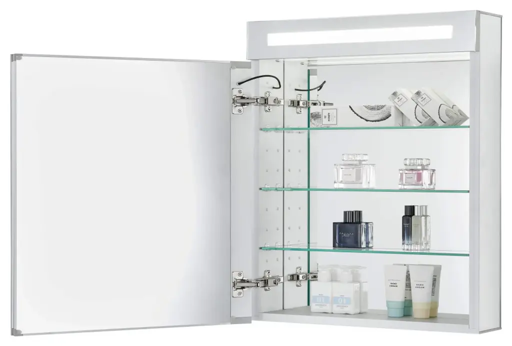 When it comes to quality and durability, Fine Fixtures is the way to go. As with everything else we make, our stainless steel and aluminum medicine cabinets will bring your bathroom designs to life. These standalone cabinets feature sleek designs that open up the space and catch the light, creating the illusion of roominess while providing added storage space. Their re ned designs are easy ways to upgrade your bathroom space. Choose from a number of styles and sizes, each with its own unique touch to suit your individual taste and decor. The various cabinets all come with adjustable shelves, allowing you to tailor your cabinet to your speci c needs. When you pick your cabinet, whether it includes LED lighting strips or features a seamless mirrored surface, our timeless styles ensure that you will love your medicine cabinet for the duration of its long life. HEAVY DUTY CONSTRUCTION- Constructed from high quality anodized aluminum with a durable nonrusting and chip free finish. Adjustable 1/4 inch tempered glass shelves offer additional bathroom storage. They will easily accommodate your essential toiletries and bath items such as soaps, shampoos, toothpaste, in addition to your makeup. MIRROR MIRROR ON THE WALL- Mirrored front door, back door, and mirrored rare wall will add beauty and elegance to any bathroom or vanity decor. Mirrored sides provide superior visibility. Frameless pencil edge. Grooved all around for clean and easy access. Soft closing hinges at 180 degrees opening angle. LED- LED task lighting integrated to the front as well as inside top of the cabinet. Brightens at 22 Lumens in Warm White color at 3500k (14.4W/M). Our brilliant lights have an estimated life expectancy of 36,000 hours. Features a blue lighted touch on/off button. Mirror must be hardwired, wiring comes out from the top right of cabinet. (Light is not strong enough to be the source of light for your vanity/washroom, additional lighting will be needed.) RECESSED OR WALL MOUNT INSTALLATION OPTION- No assembly required. All mounting hardware included. Easy installation, step by step easy to follow clear instruction guide included. Width - 24" Height 30" Finish - Stainless Steel Number Of Doors - 1 Shape - Rectangle Material - Stainless Steel Concealed Hinges Adjustable Shelves Interior Mirror Adjustable Hinges Number of shelves - 4