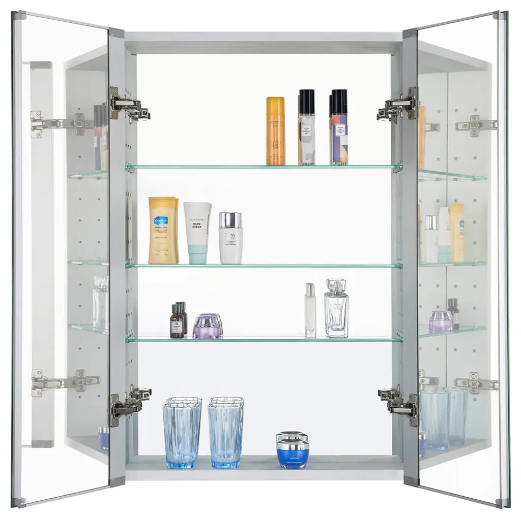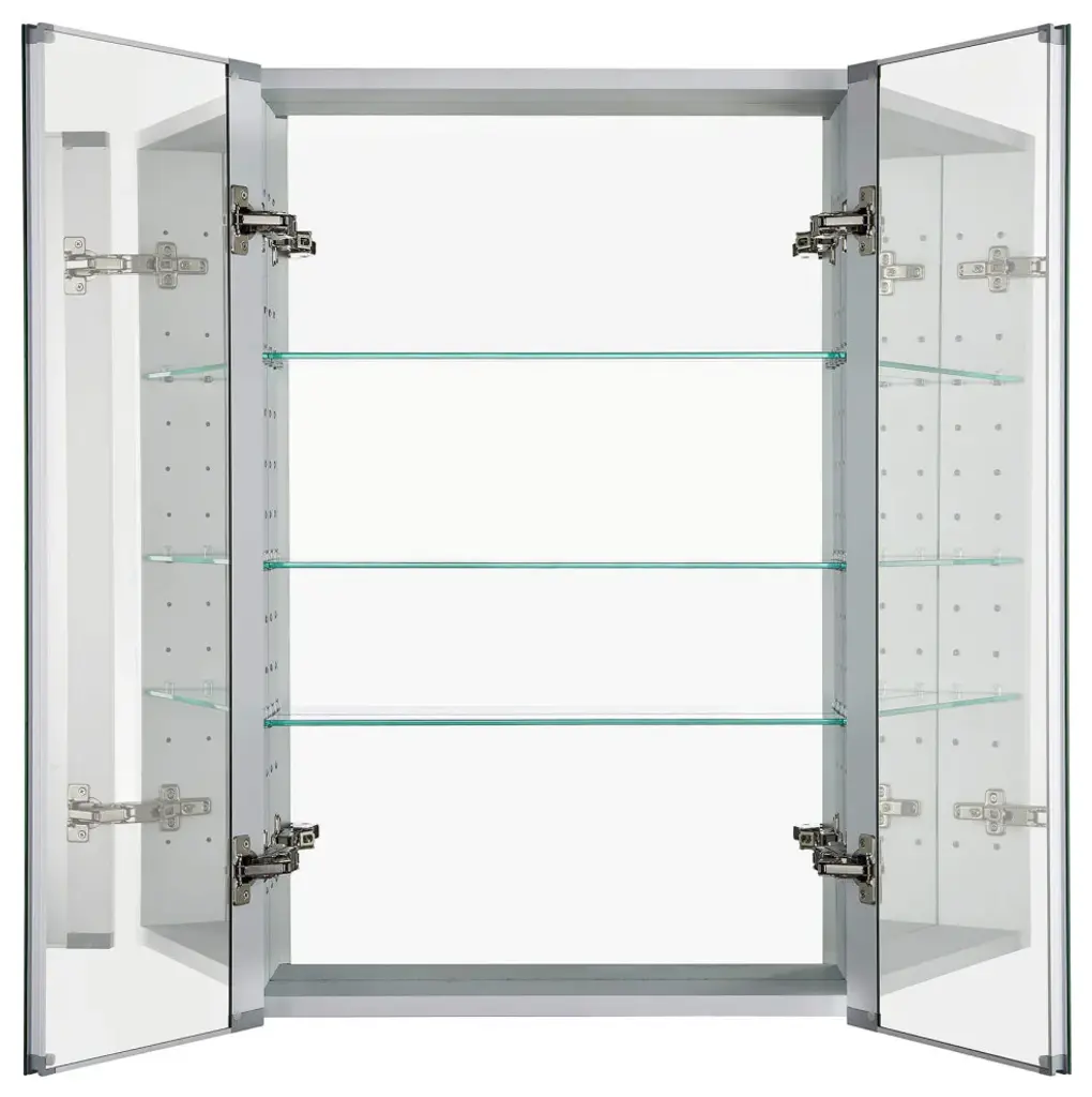When it comes to quality and durability, Fine Fixtures is the way to go. As with everything else we make, our stainless steel and aluminum medicine cabinets will bring your bathroom designs to life.These standalone cabinets feature sleek designs that open up the space and catch the light, creating the illusion of roominess while providing added storage space. Their refined designs are easy ways to upgrade your bathroom space. Choose from a number of styles and sizes, each with its own unique touch to suit your individual taste and décor.The various cabinets all come with adjustable shelves, allowing you to tailor your cabinet to your specific needs. When you pick your cabinet, whether it includes LED lighting strips or features a seamless mirrored surface, our timeless styles ensure that you will love your medicine cabinet for the duration of its long life.HEAVY DUTY CONSTRUCTION- Constructed from high quality anodized aluminum with a durable nonrusting and chip free finish. Adjustable tempered glass shelves offer additional bathroom storage. They will easily accommodate your essential toiletries and bath items such as soaps, shampoos, toothpaste, in addition to your makeup.MIRROR MIRROR ON THE WALL- Mirrored front door, back door, and mirrored rear wall will add beauty and elegance to any bathroom or vanity decor. Mirrored sides provide superior visibility. Frameless pencil edge. Grooved all around for clean and easy access. Soft closing hinges at 180 degrees opening angle.INVERTIBLE: Can be inverted to use as a left hand or right hand swing. More than one can be installed in conjunction for bigger cabinet option (hardware included).RECESSED OR WALL MOUNT INSTALLATION OPTION- No assembly required. All mounting hardware included. Easy installation, step by step easy to follow clear instruction guide included.DIMENSIONS- 24 x 36 x 5.2. Numerous sizes and styles available. Right hinged and left hinged may be installed in conjunction for bigger cabinet option (hardware included).