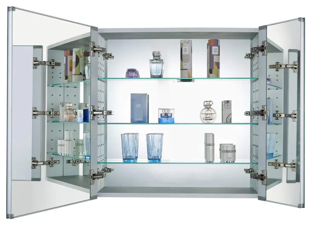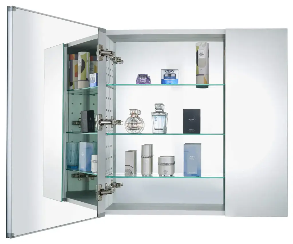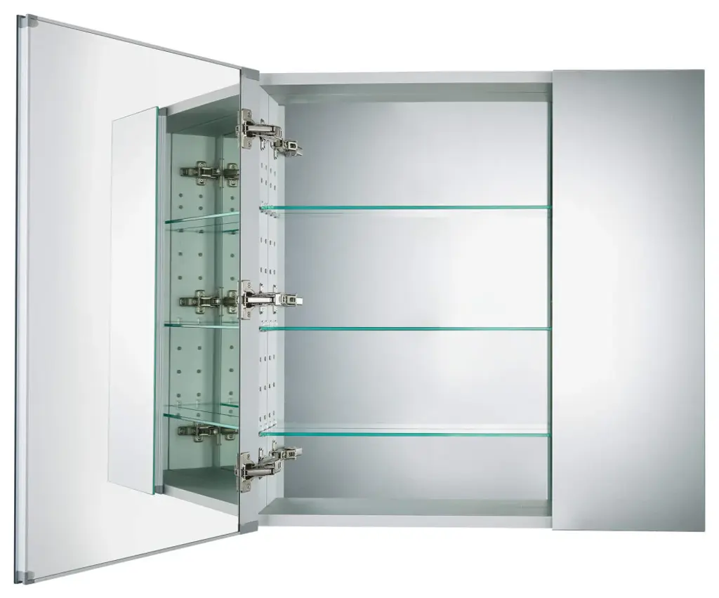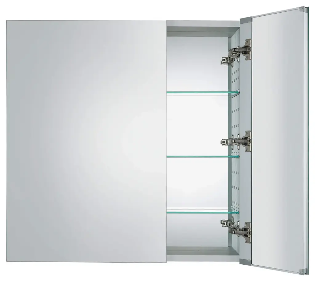 When it comes to quality and durability, Fine Fixtures is the way to go. As with everything else we make, our stainless steel and aluminum medicine cabinets will bring your bathroom designs to life.These standalone cabinets feature sleek designs that open up the space and catch the light, creating the illusion of roominess while providing added storage space. Their refined designs are easy ways to upgrade your bathroom space. Choose from a number of styles and sizes, each with its own unique touch to suit your individual taste and décor.The various cabinets all come with adjustable shelves, allowing you to tailor your cabinet to your specific needs. When you pick your cabinet, whether it includes LED lighting strips or features a seamless mirrored surface, our timeless styles ensure that you will love your medicine cabinet for the duration of its long life.HEAVY DUTY CONSTRUCTION- Constructed from high quality anodized aluminum with a durable nonrusting and chip free finish. Adjustable tempered glass shelves offer additional bathroom storage. They will easily accommodate your essential toiletries and bath items such as soaps, shampoos, toothpaste, in addition to your makeup.MIRROR MIRROR ON THE WALL- Mirrored front door, back door, and mirrored rear wall will add beauty and elegance to any bathroom or vanity decor. Mirrored sides provide superior visibility. Frameless pencil edge. Grooved all around for clean and easy access. Soft closing hinges at 180 degrees opening angle.INVERTIBLE: Can be inverted to use as a left hand or right hand swing. More than one can be installed in conjunction for bigger cabinet option (hardware included).RECESSED OR WALL MOUNT INSTALLATION OPTION- No assembly required. All mounting hardware included. Easy installation, step by step easy to follow clear instruction guide included.DIMENSIONS- 30 x 30 x 5.2. Numerous sizes and styles available. Right hinged and left hinged may be installed in conjunction for bigger cabinet option (hardware included).