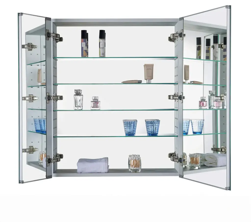 When it comes to quality and durability, Fine Fixtures is the way to go. As with everything else we make, our stainless steel and aluminum medicine cabinets will bring your bathroom designs to life.These standalone cabinets feature sleek designs that open up the space and catch the light, creating the illusion of roominess while providing added storage space. Their refined designs are easy ways to upgrade your bathroom space. Choose from a number of styles and sizes, each with its own unique touch to suit your individual taste and decor.The various cabinets all come with adjustable shelves, allowing you to tailor your cabinet to your specific needs. When you pick your cabinet, whether it includes LED lighting strips or features a seamless mirrored surface, our timeless styles ensure that you will love your medicine cabinet for the duration of its long life.Frameless and timeless, the classic medicine cabinet features no-fuss aesthetics.Constructed from high-quality anodized aluminum with a durable, rust-free, chip-free finish.Features full overlay, dual-sided mirror doors with Soft closing hinges.Includes mounting hardware for either surface or recess installation (side mirror for surface mount).Frameless pencil edge mirror front and back door create beauty and elegance to any decor.Gain easy access to cabinet interiors via the simple, smart grip grooves at the indent of each door.Adjustable .25 inch tempered glass shelving for added functionality.All necessary parts and hardware for assembly.Vertically adjustable magnification mirror accommodates users of varied heights.Multi-Angle: interchangeable Right or Left hand options allow these medicine cabinets to transition based on placement.Grooves all around the cabinet door.Simplified wipe-clean maintenance.