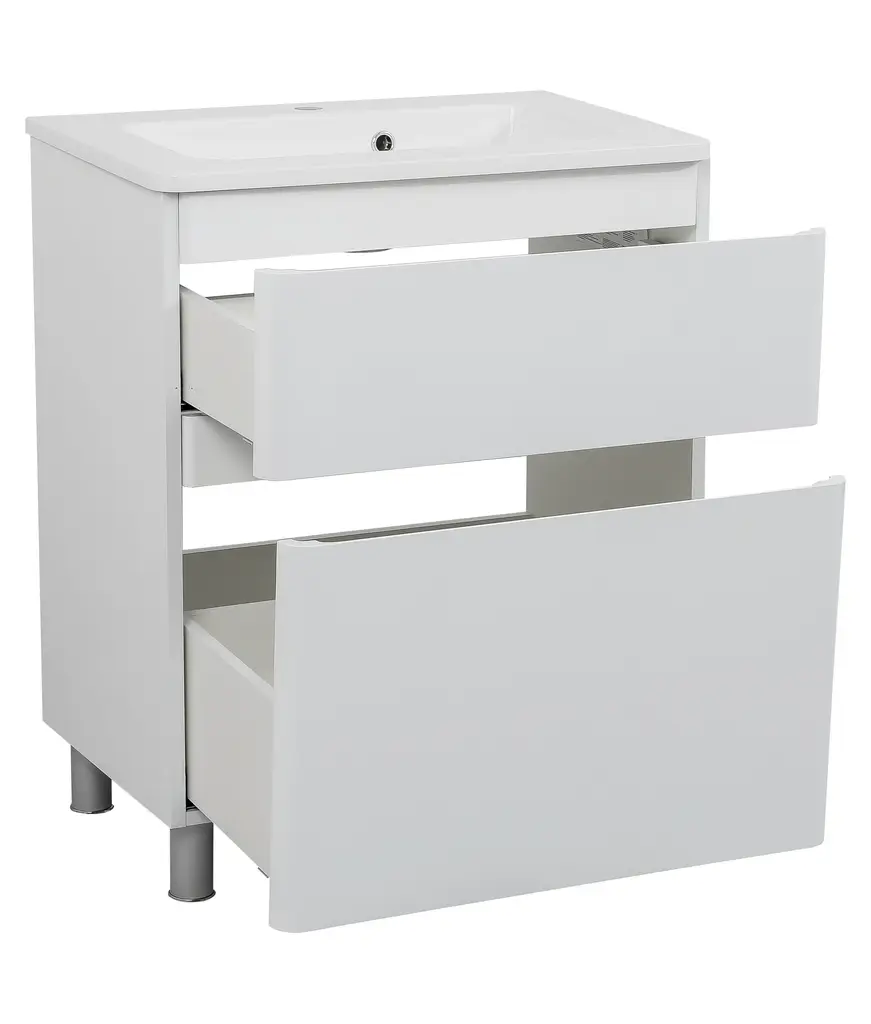 STANDART SET INCLUDES: Vanity with Washbasin Modern Free St anding White High Gloss with Side Vanity Cabinet - total size 40" (28+12). No Mirror includedMATERIALS: Materials are resistant to changes in humidity and temperature conditionsFINISHING: Fronts and side panels covered with three layers of primer and painted with two layers of polyurethane paint production of "KEMICHAL" (Italy). as well as wrapped by PVCEUROPEAN QUALITY: which has increased plasticity. chemical. heat and moisture resistance. hardly flammable. nontoxic. are resistant to sunlight. bad weather and does not exfoliate even in the most severe climatic conditions.FURNITURE fittings "Blum" (Austria). "Hettich" (Germany). certified.Standard Set Includes Vanity with WashbasinDesigner collection Comfort: bathroom furniture with French charmStylish collection of modern furniture is created for special interiors where beauty and practicality are harmoniously combined. The laconic design of cabinets and sanitary ware is successfully integrated into the surrounding space. creating an atmosphere of luxury and comfort. The use of natural materials adds attractiveness to the products and ensures the high ecological safety of the goods.Comfort - original European quality furniture.The model line consists of three elements:Console cabinet with sink "Alpha";Floor cabinet with sink "Alpha";Console side cabinet;Several sizes of cabinets and vanities are available for order. which allows you to choose the optimal option for a particular interior. The furniture is equipped with universal fittings from well-known world manufacturers - companies "Blum" (Austria) and "Hettich" (Germany). All doors have a soft-closing mechanism. The technology of concealed guides provides smooth movement of drawers. making use even more comfortable. The production of furniture uses high-quality edge banding from the world leader in the production of polymer materials "Rehau" (Germany).The cabinets and vanities of this collection can be ordered in several colours:Gray Matt;Rosewood;High Gloss White;Gloss White;Natural Teak;Main advantages of the furniture from the Comfort collectionOur company's professional mission is to produce premium furniture at an affordable price. We use innovative solutions in the furniture industry as well as our designers' original developments. Thanks to this. you can purchase an elite bathroom collection with the following advantages:Increased resistance of materials to moisture and temperature fluctuations;Resistance to sunlight. maintaining colour saturation and depth throughout the entire period of use;Standard doors are made with right or left opening;The surface is protected against mold and mildew. and is environmentally friendly;The furniture does not absorb unpleasant outdoors and solvents;A sturdy frame is capable of withstanding significant loads. and proper organization of the internal space provides a large capacity for the cabinet and vanity;Daily care for surfaces does not require expensive tools or a lot of time;The Comfort Collection charmingly complements the interior of residential and public spaces decorated in styles such as loft. minimalism. techno. hi-tech. eco. constructivism. contemporary. Japandi (Japanese). and others. The model range with a noble design is created for discerning connoisseurs of true beauty and high quality.