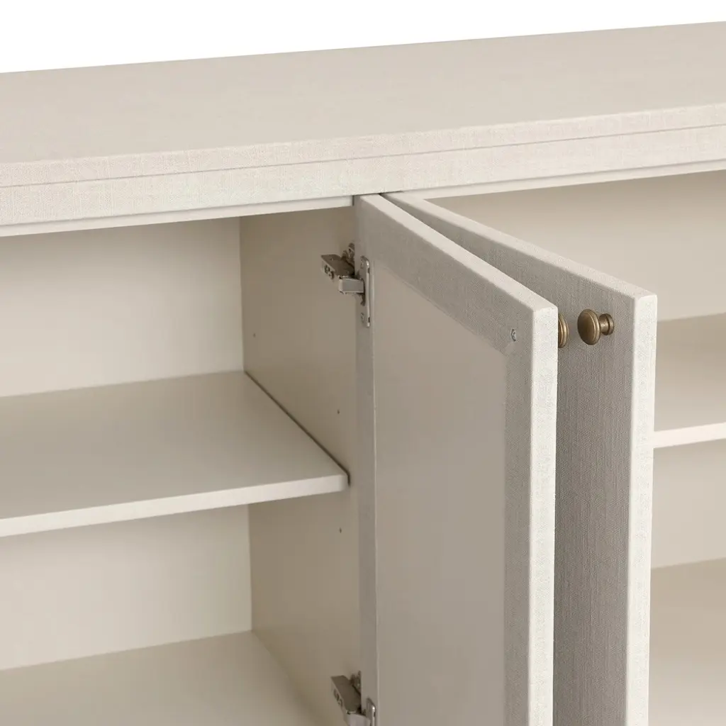 Beatrice Modern Classic Cream Painted Linen Oval Media Cabinet - 72"