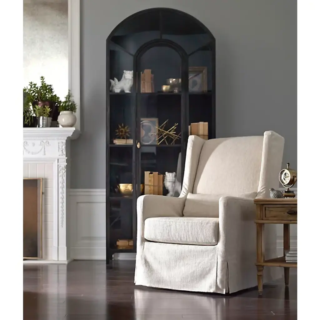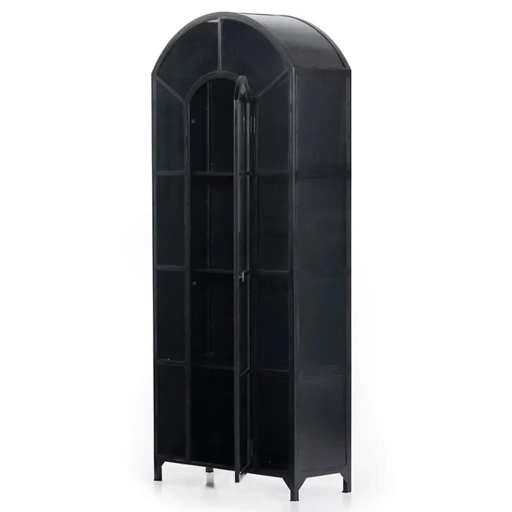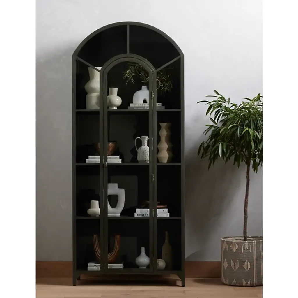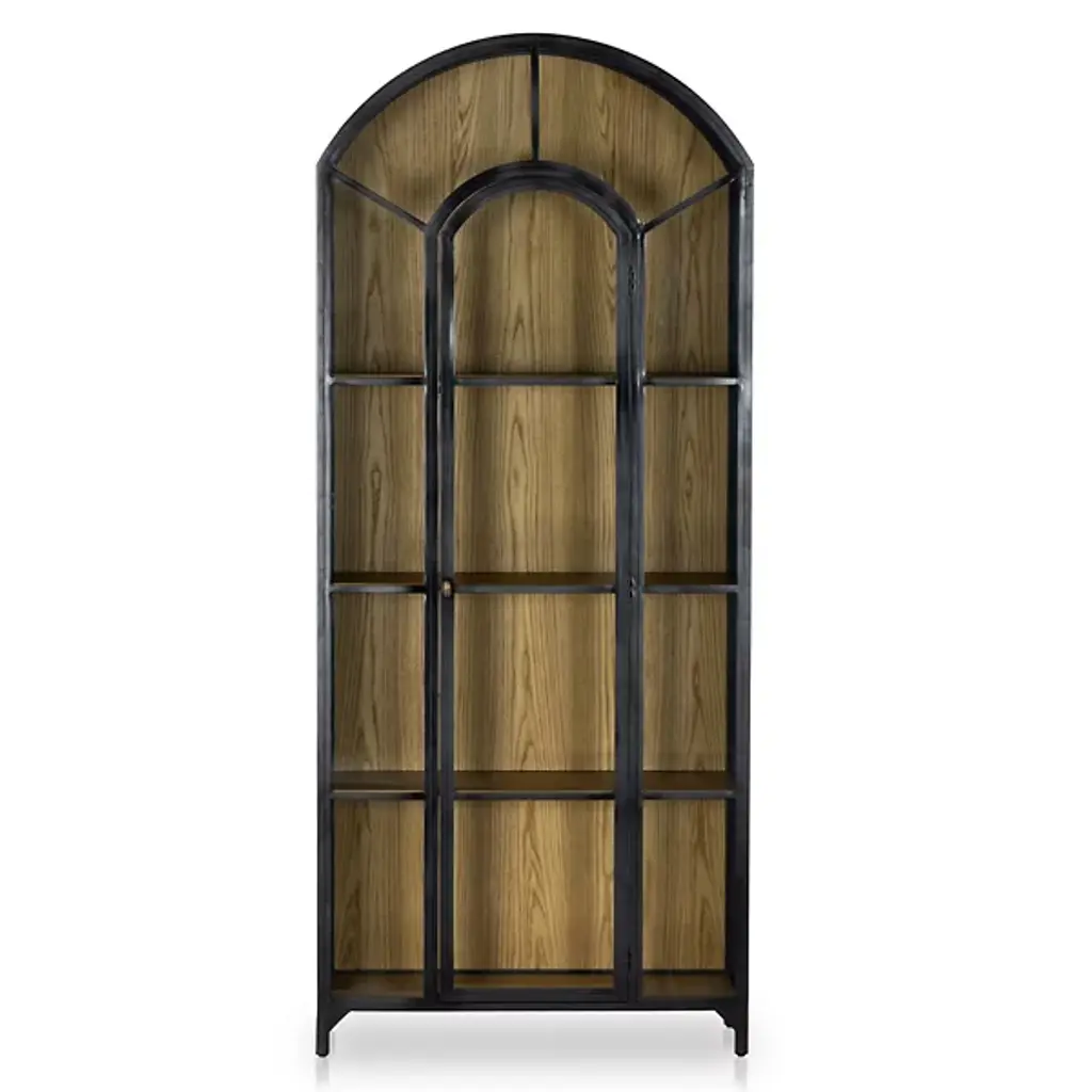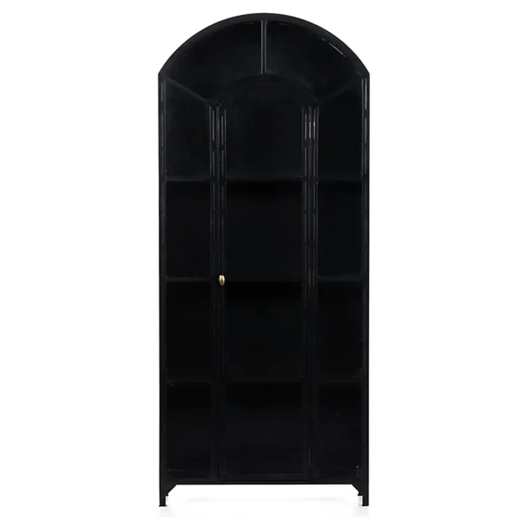 Showcase your barware, books, and cherished items in the Belmont Cabinet from Four Hands. Crafted from solid iron sheeting in a soft matte black, it features contrasting brass hardware for a touch of sophistication. Glass-front doors reveal the light oak veneer back paneling, creating a striking contrast that draws the eye. Perfect for adding style and storage, this piece blends modern elegance with timeless appeal, enhancing any space with its thoughtful design and beautiful materials.