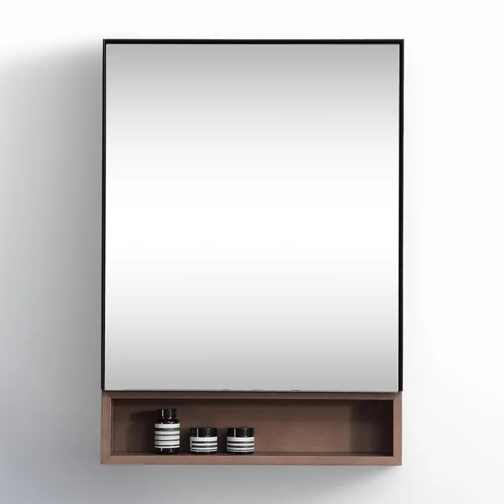 Bergen Modern Medicine Cabinet, Matte Black Frame, Walnut Shelf, 36"