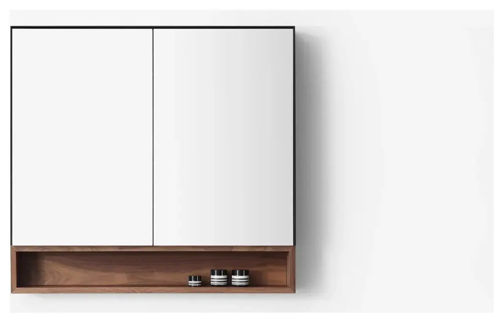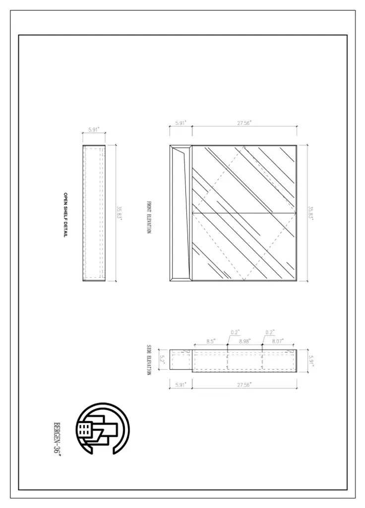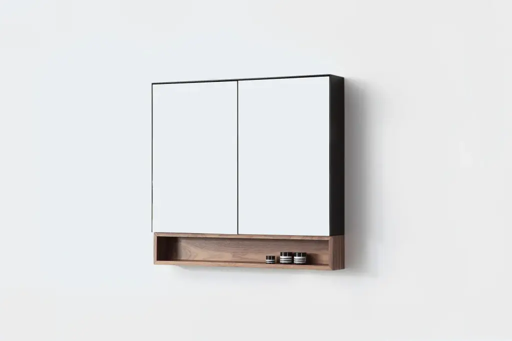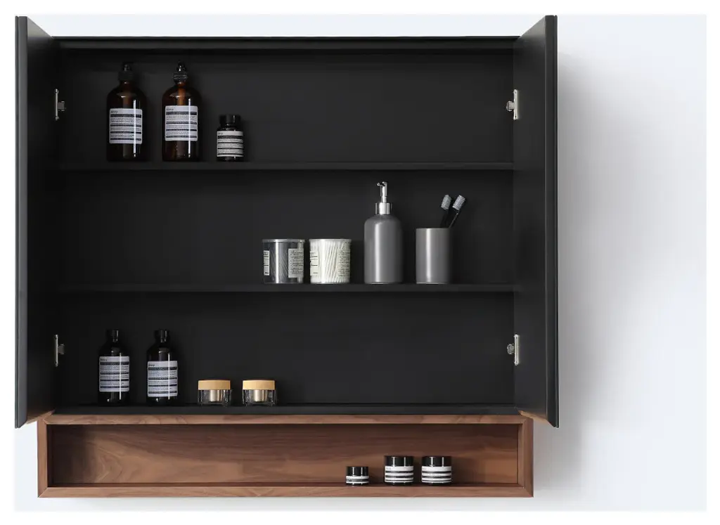 Product DescriptionCartisan Design is pleased to announce the Bergen medicine cabinet, shown in 36-inch Matte Black/Walnut. The elegant mirrored doors open easily to reveal three shelves with ample storage space. Underneath, an additional sturdy shelf made of high quality wood emphasizes the unit''s utility. The clean lines and high quality build will bring a sense of organization and warmth to your bathing space. The medicine cabinet is assembled and easy to installPremium metal frame in smooth matte black finishing colorElegant hardwood finishing for the bottom open shelf in walnut colorWall mounted medicine cabinet with enough storage spacesLarge frame in detailed design with squared edge mirrorComes with metal inset hangers attached to the back of the cabinetMedicine cabinet can only be installed as shown in the pictureColor: Matte Black/WalnutDimension:Upper Cabinet: 35.83"(Width) x 27.56" (Height) x 5.91" (Depth)Lower Open Shelf: 35.83"(Width) x 5.91" (Height) x 5.2" (Depth)Total: 35.83"(Width) x 33.47" (Height) x 5.91" (Depth)