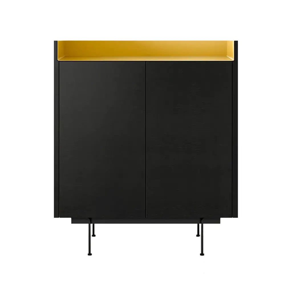 Bespoke wooden storage cabinet made of lacquered wood and chrome-plated metal. Wood finish in various colors and finishes. Also available in veneered wood.Available on request in various colors, finishes and interior layouts. Production time c. 12 weeks.