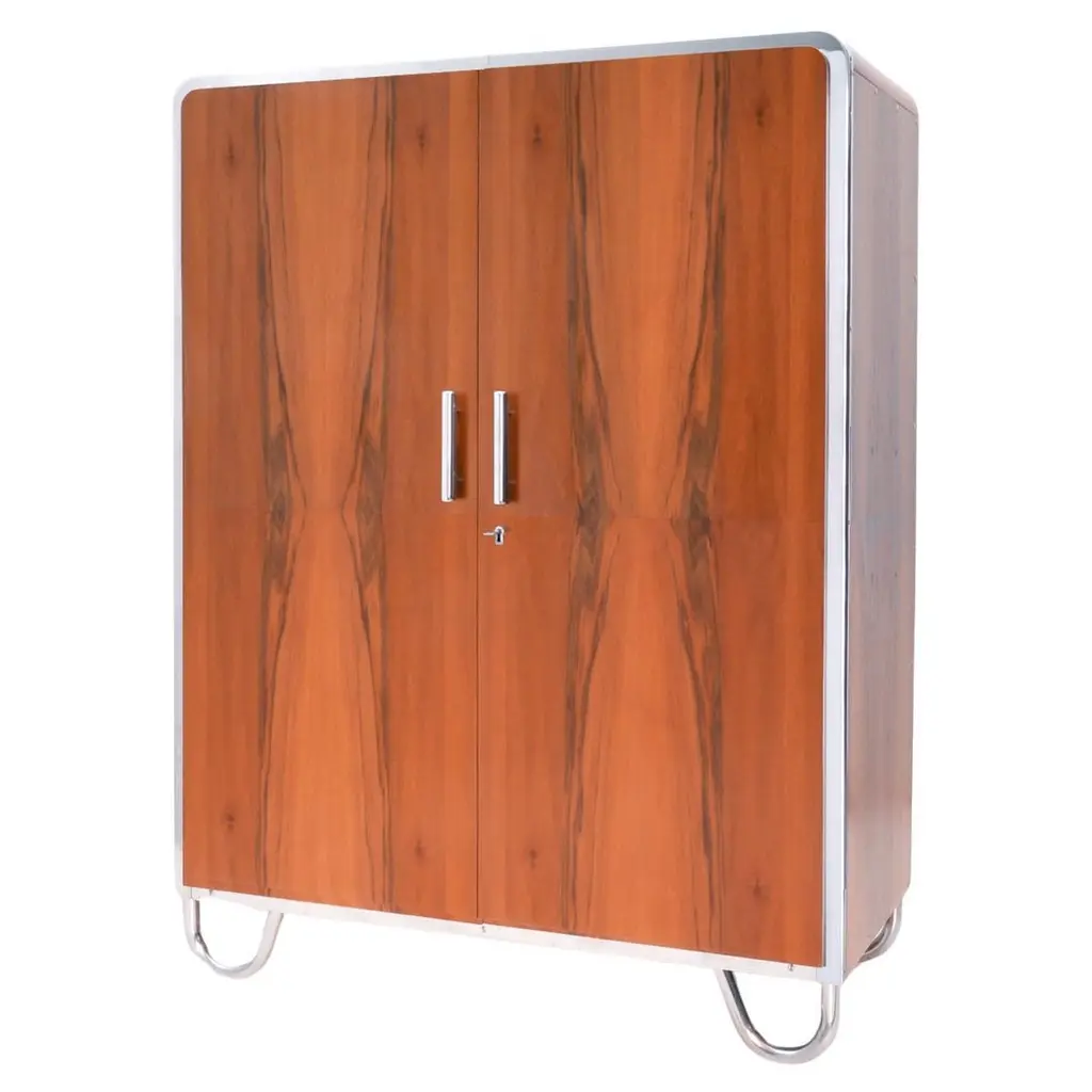 Bespoke Modernist Storage Cabinet In Lacquered Wood And Tubular Steel Hardware