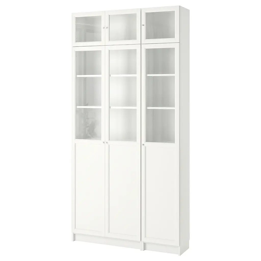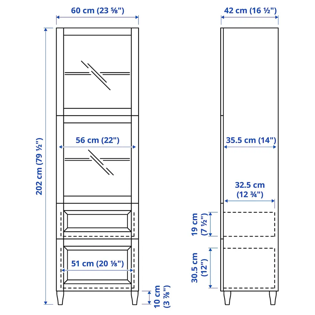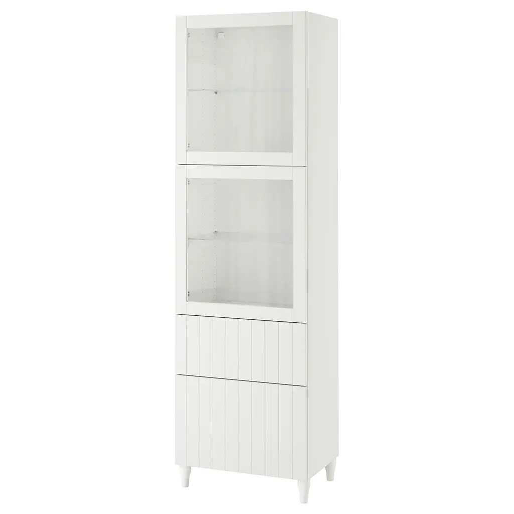 BESTÅ Storage combination w/glass doors - white/Sutterviken/Kabbarp white clear glass 23 5/8x16 1/2x79 1/2 ". The drawers close silently and softly, thanks to the integrated soft-closing function. Glass doors keep your items free from dust but still visible. Knobs and handles are sold separately.