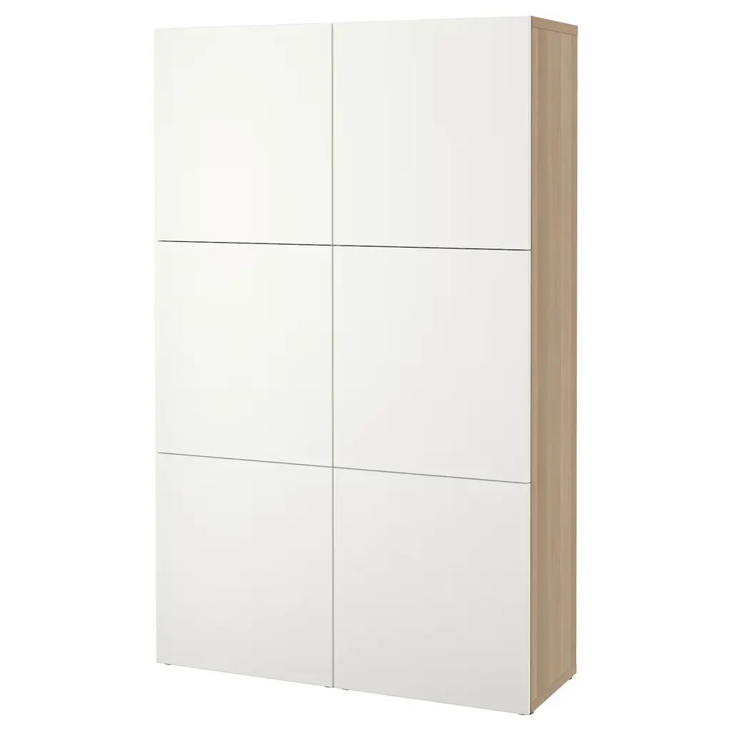 BESTÅ Storage combination with doors - white/Björköviken birch veneer 47 1/4x16 1/2x76 ". BJÖRKÖVIKEN front is made of birch veneer, giving each door a sense of quality with a natural expression. The shelves are adjustable so you can customize your storage as needed.