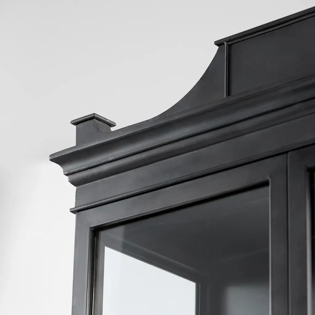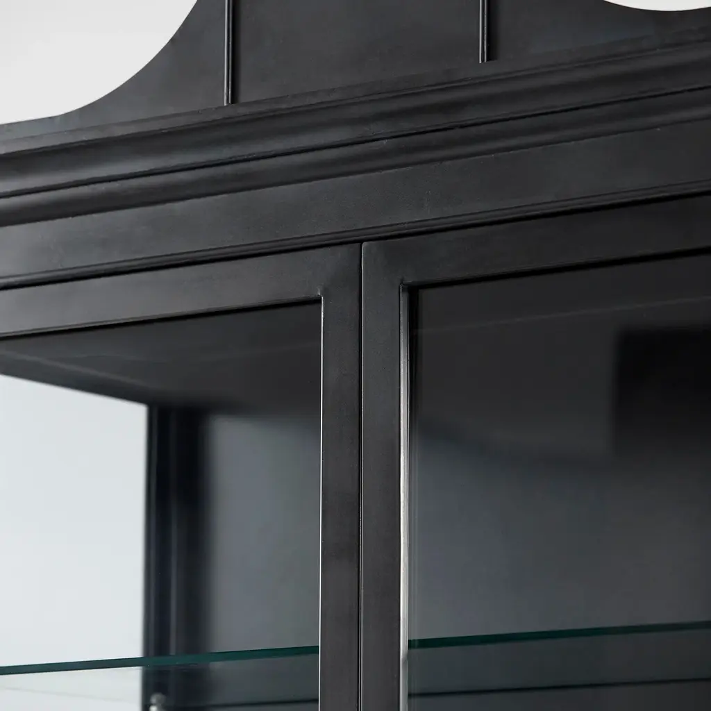 The Bethlem Cabinet is a traditional piece of accent furniture. This full-size storage furnishing borrows elements from traditional decor, with its dark finish and decorative molding, as well as French country styling, with its ornate motifs and softly curved accents. This cabinet is perfect for any unassuming but upscale dining room or kitchen space, with ample storage space on its five surface levels.