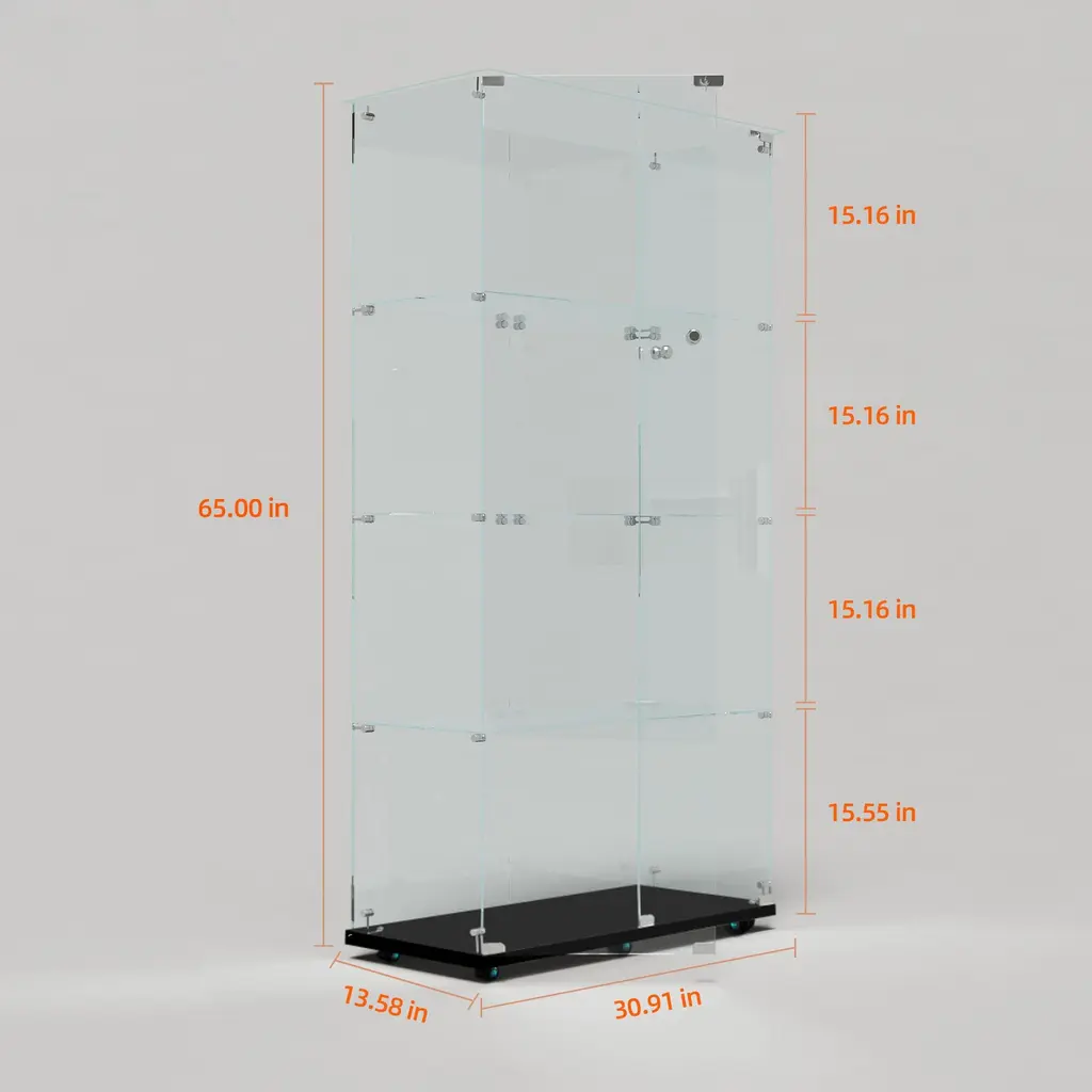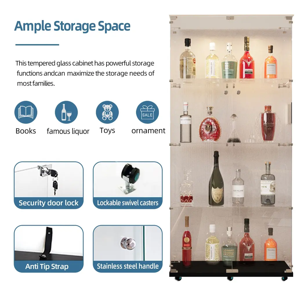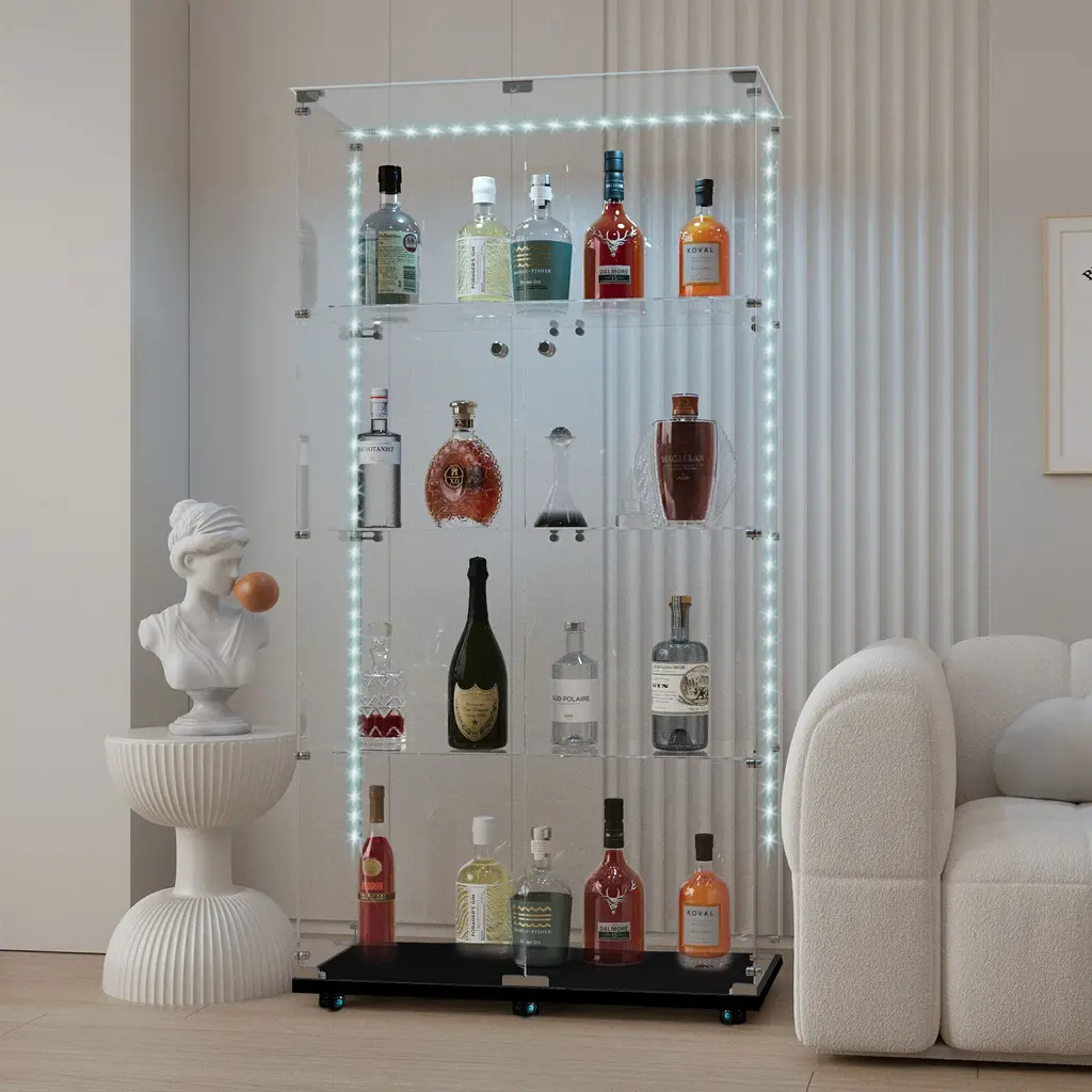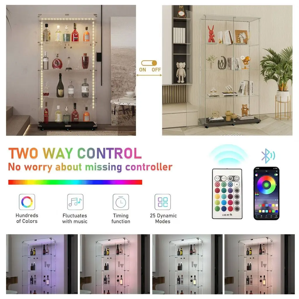 black Glass Display Cabinet Bluetooth Led, Wheels & App Control - Black
