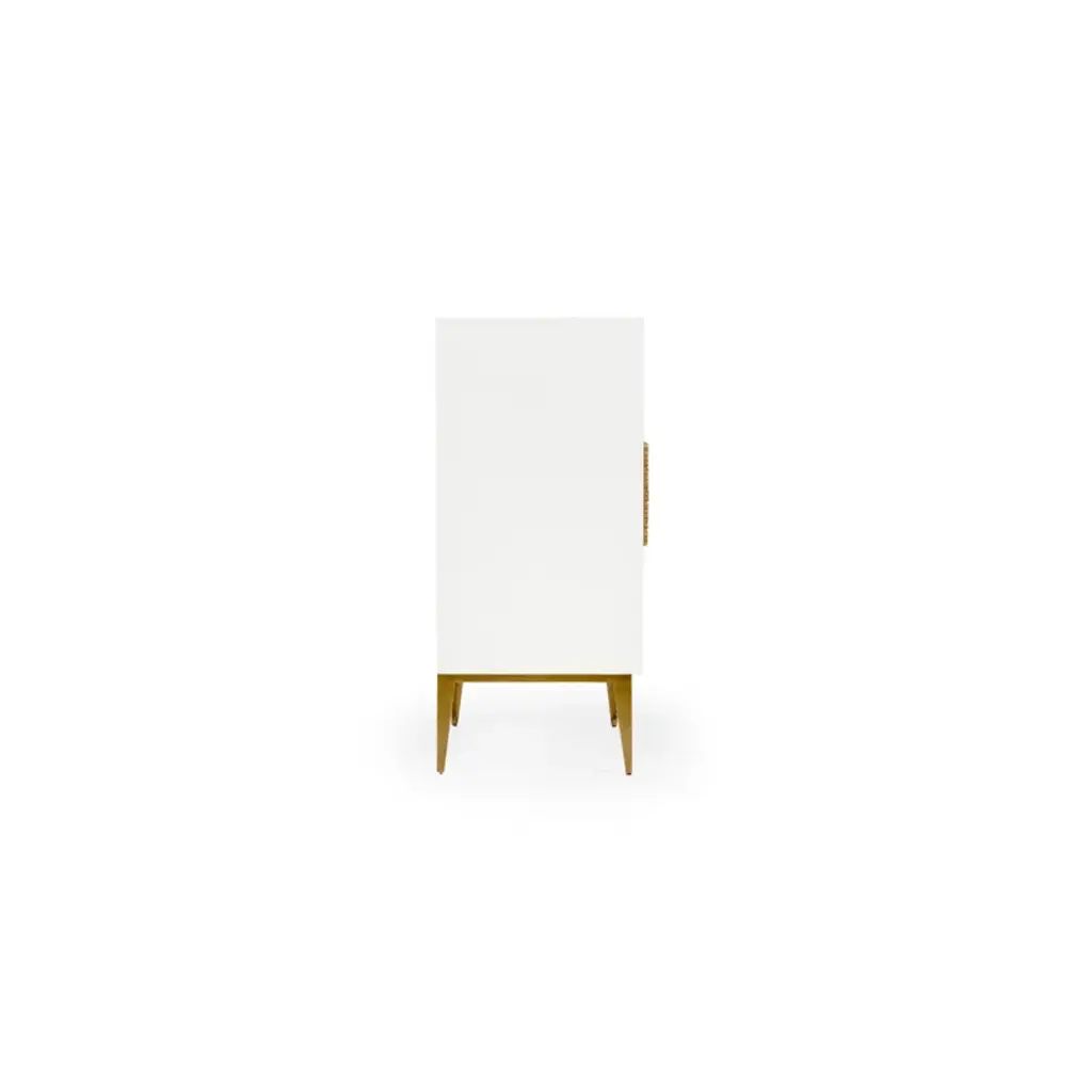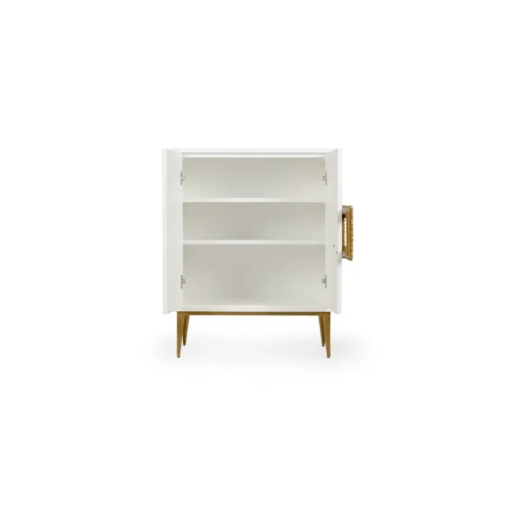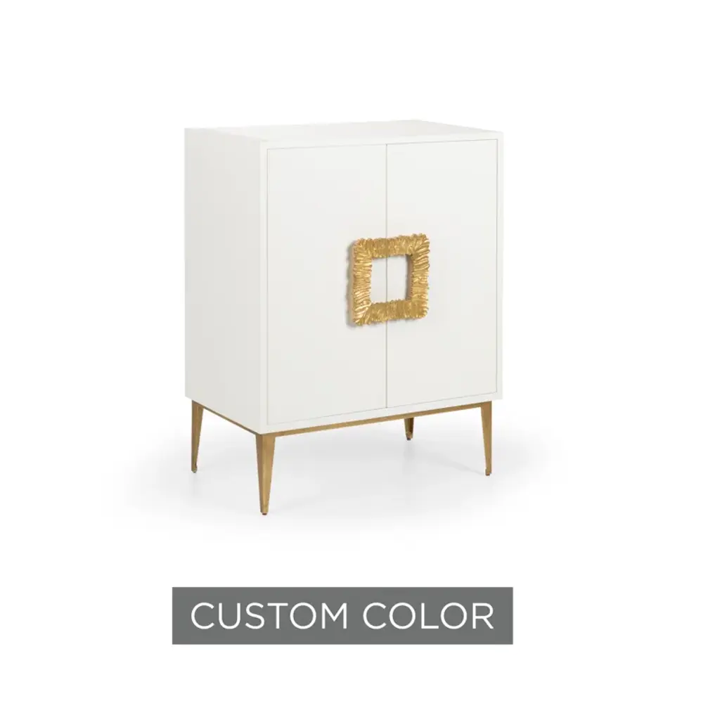 Structured, regal, and covered in textured shagreen leather, the Blakely door chest features a gold-toned external structure designed to add interest and intrigue.