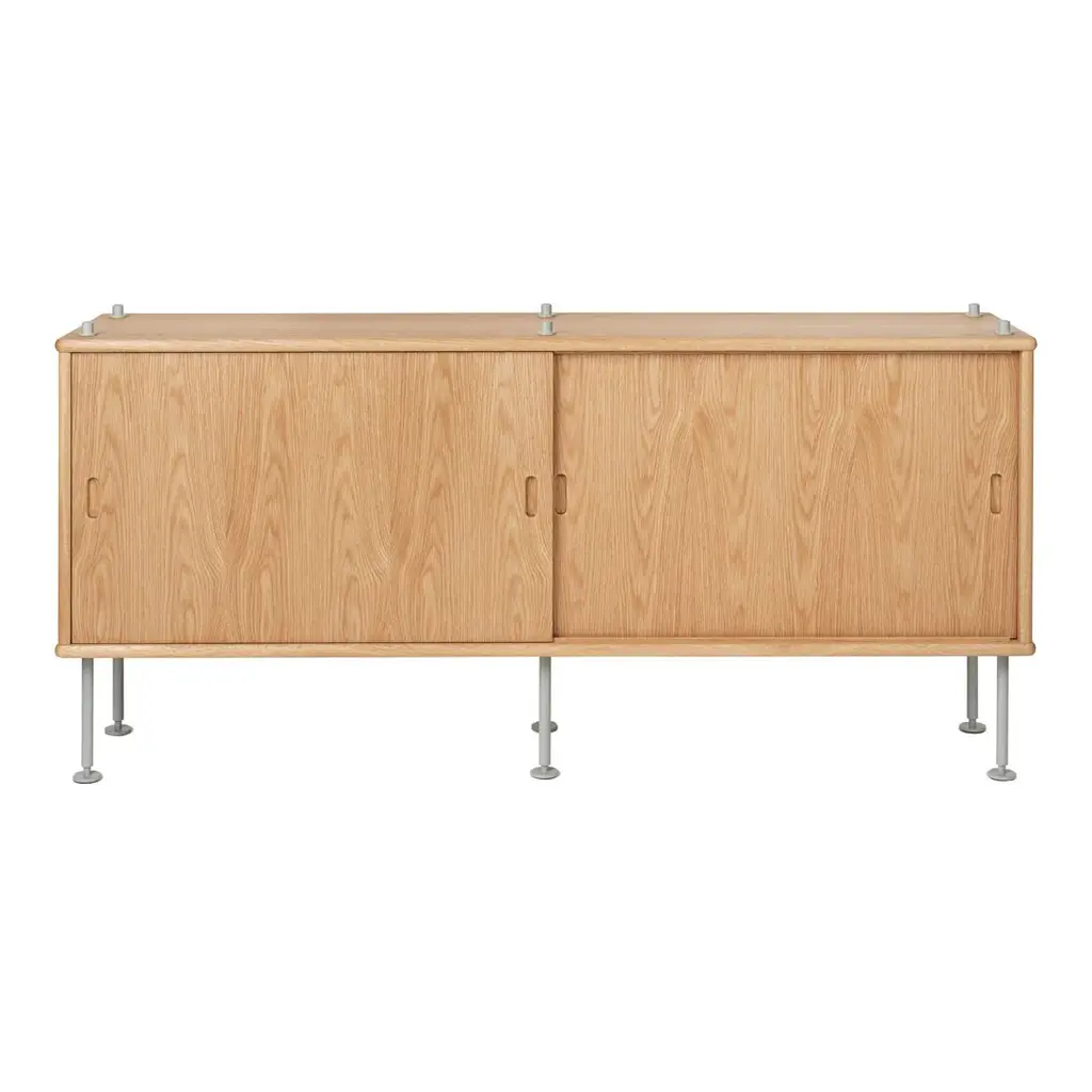 Carl Hansen&Son is expanding its Børge Mogensen collection with a flexible storage system that has never been in production before. In collaboration with Børge Mogensen's family, Carl Hansen&Son has given life to the furniture designer's forgotten drawings. The result is an expandable shelving system that can be rebuilt, built on and adapted to individual storage needs and changing room sizes. The flexible and multifunctional shelving system is the embodiment of simplicity with its veneered shelves of varying sizes and a wooden cabinet, all of which can be assembled using a frame made of cylindrical metal bars of different lengths. The shelves and cabinet module can be combined according to your needs, and the blend of open and closed modules creates a rhythmic and transparent expression. Custom configurations are also available for the BM0253 Shelving System. Please contact us for additional information or if you are interested in creating a unique configuration to fit your space. Components Include: [1] BM0253 Legs - 7.9" H - Set of 6 [1] BM0253 Cabinet - includes a 17.7" rod set (set of 6), two cabinet shelves, and pre-drilled holes for positioning [2] BM0253 Door
