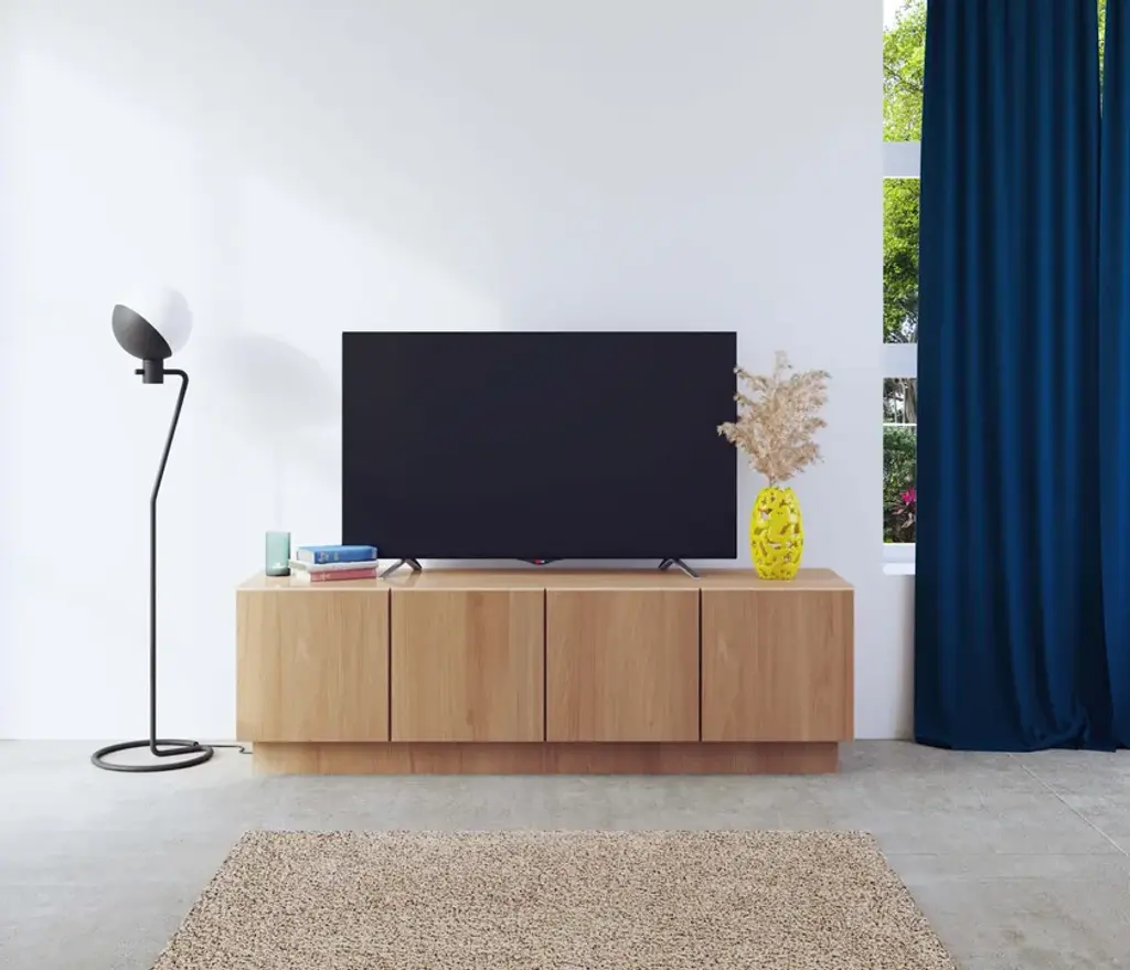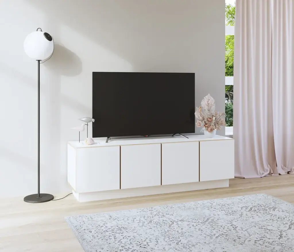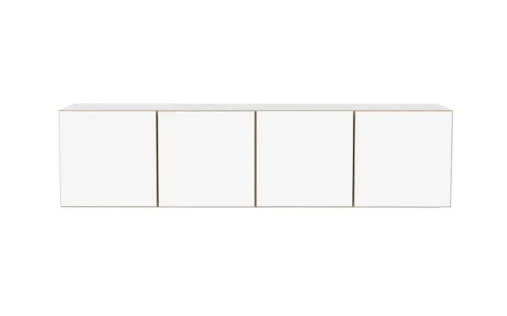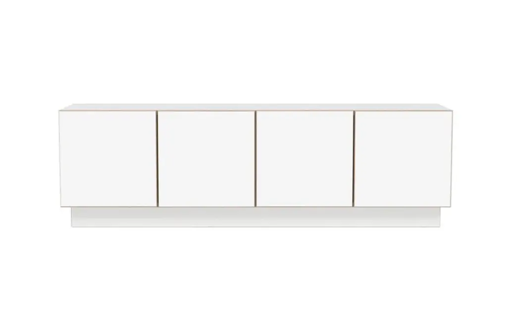When you are watching TV surely you want a pleasing sight even when your eyes wander off from the screen.BOXY TV stand offers that. Clean aesthetic and mid- century inspired metal legs make it in an instant classic. Doors with minimal black knobs behind which you can store everything from books to you secret TV snack stash.Made of oilwaxed birch plywood, also oak veneered and Koskisen CPL on plywood. Soft closing door hinges. Push-2-open door hinges that open and close with pressure. Plinth 8 cm high, which fits with different skirting boards. Or, if desired, a wall-mounted version – you can fasten it to the wall with screws through a strong rear wall.Wood finishOak VeneeredWhite CPLLeg TypeOn the wallPlinth
