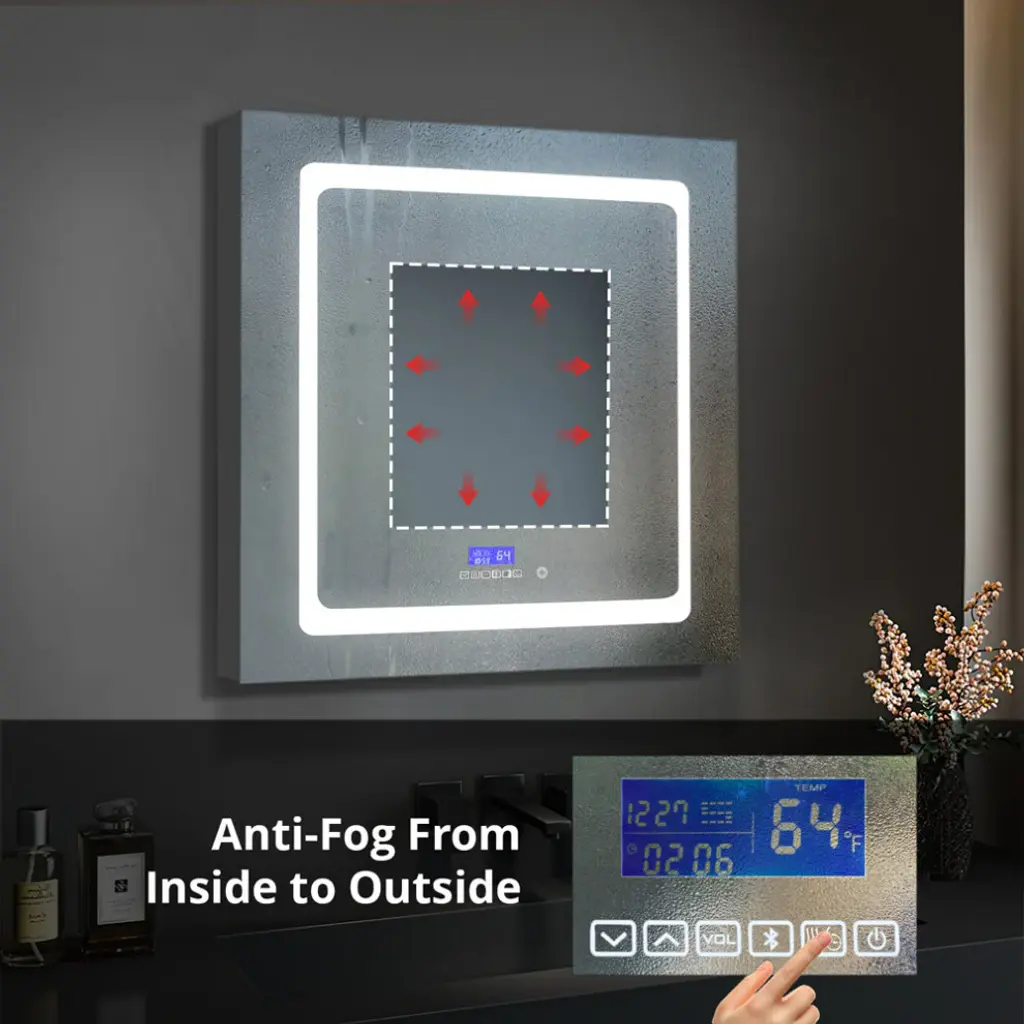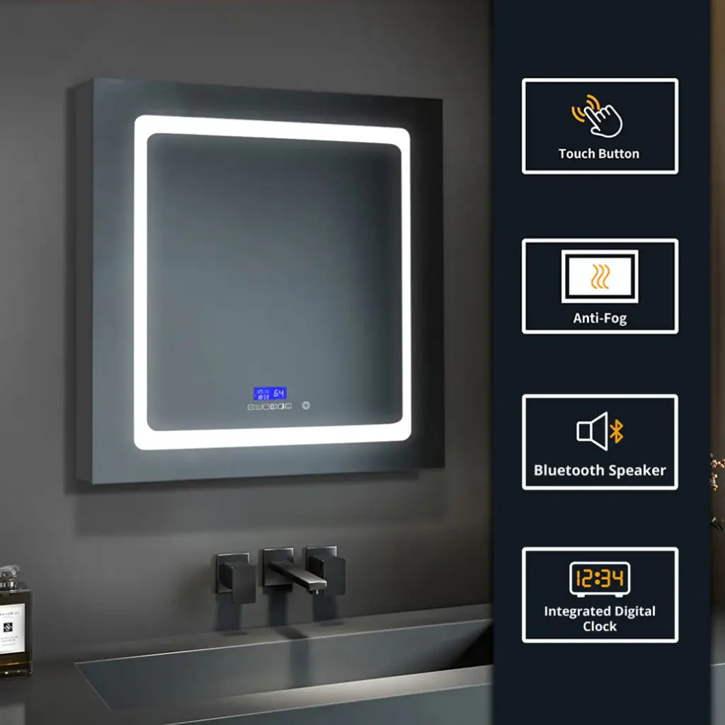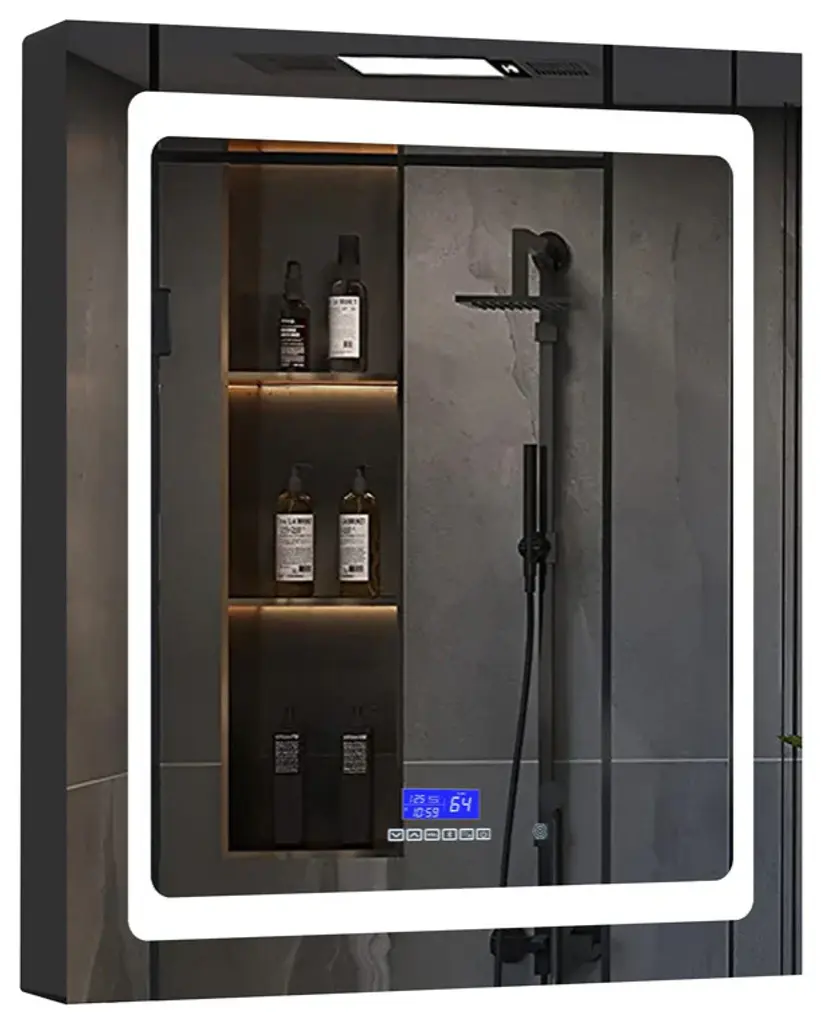 The Bracciano bathroom medicine cabinet integrates smart features with a compact, functional design in order to transform your bathroom area into a well-organized, practical space. Impressing with state of the art touch buttons, high-end built-in defogger ideal for makeup or skincare routines, plus a convenient digital clock that makes sure to get you ready on time, this bath cabinet easily accommodates your everyday essentials, toothbrushes, mouthwash, as well as other personal care products. The Bluetooth speakers allow you to create a relaxing SPA-like ambiance, while the high quality mirror maintains a crystal clear reflection image. Available in various sizes depending on your custom needs, easy to install with a wall mount system, the Bracciano bathroom medicine cabinet doesn�t overpower the room, being an ideal choice for any bathroom decor.• Integrated LED light• Copper-free mirror • Surface wall mount installation• Mirror defogger• Integrated digital clock and Bluetooth speaker• Single door design w/ soft-close hinges• Touch screen buttons• All mounting hardware included• Color Temperature 6000-6500K• Stainless steel frame and Aluminum door• UL approved• 3050LM