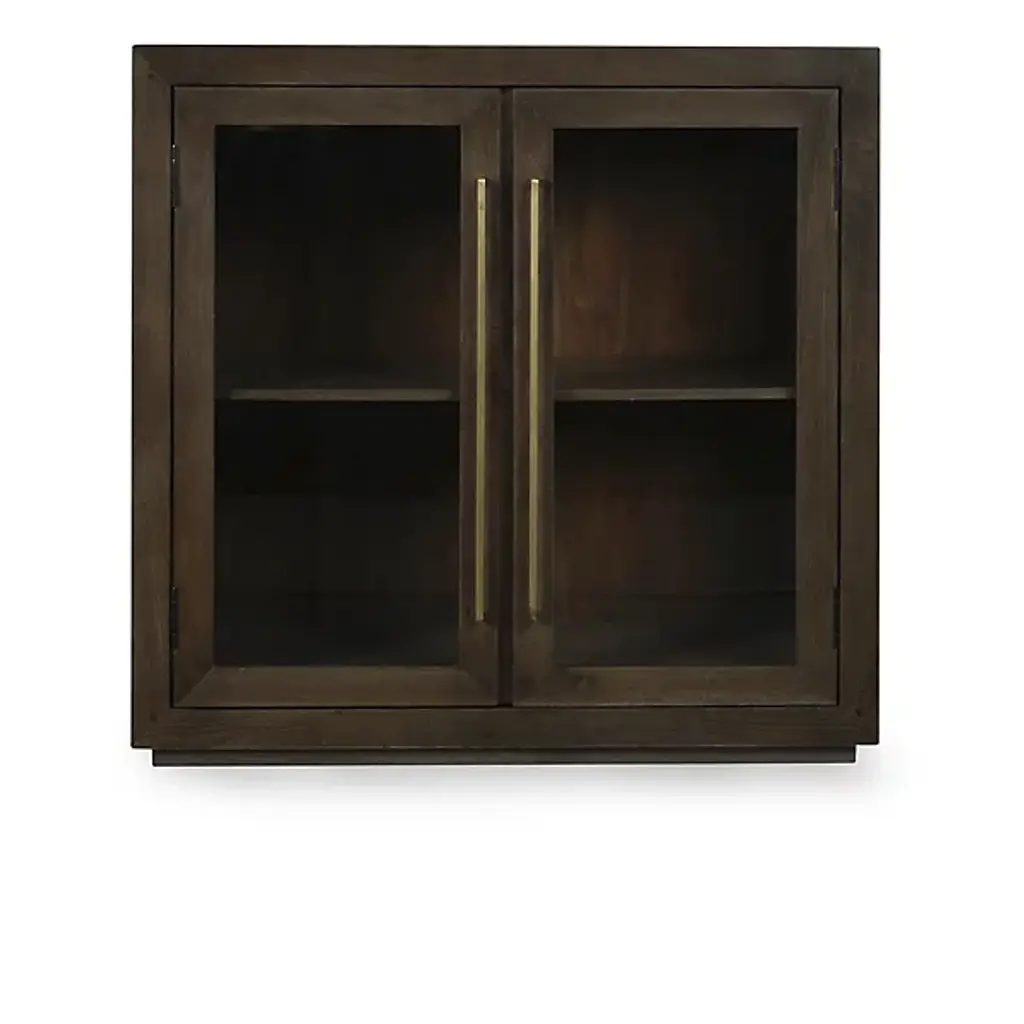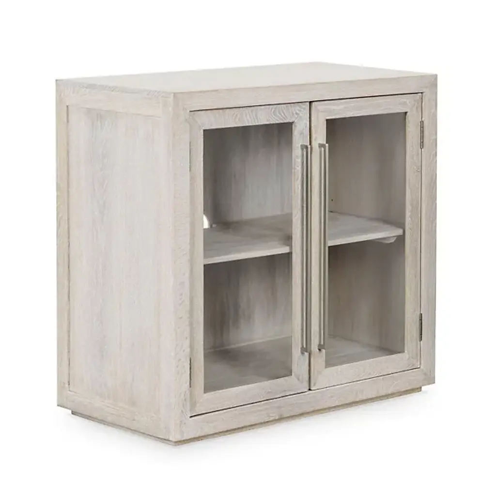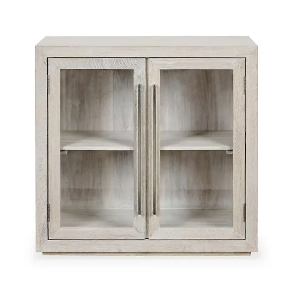 The Bradley 2 Door Cabinet from Classic Home adds natural character and practical storage to your living spaces. A strong, rectangular construction of solid oak helps highlight the natural grain of the oak, further enhanced by a carefully-applied finish. Glass-front doors with slim vertical handles reveal two spacious shelves, ideal for storing books, decor, or electronics. A built-in cable management cutout on the back panel allows for easy setup of media devices on any shelf, adding function to the layered, inviting form.