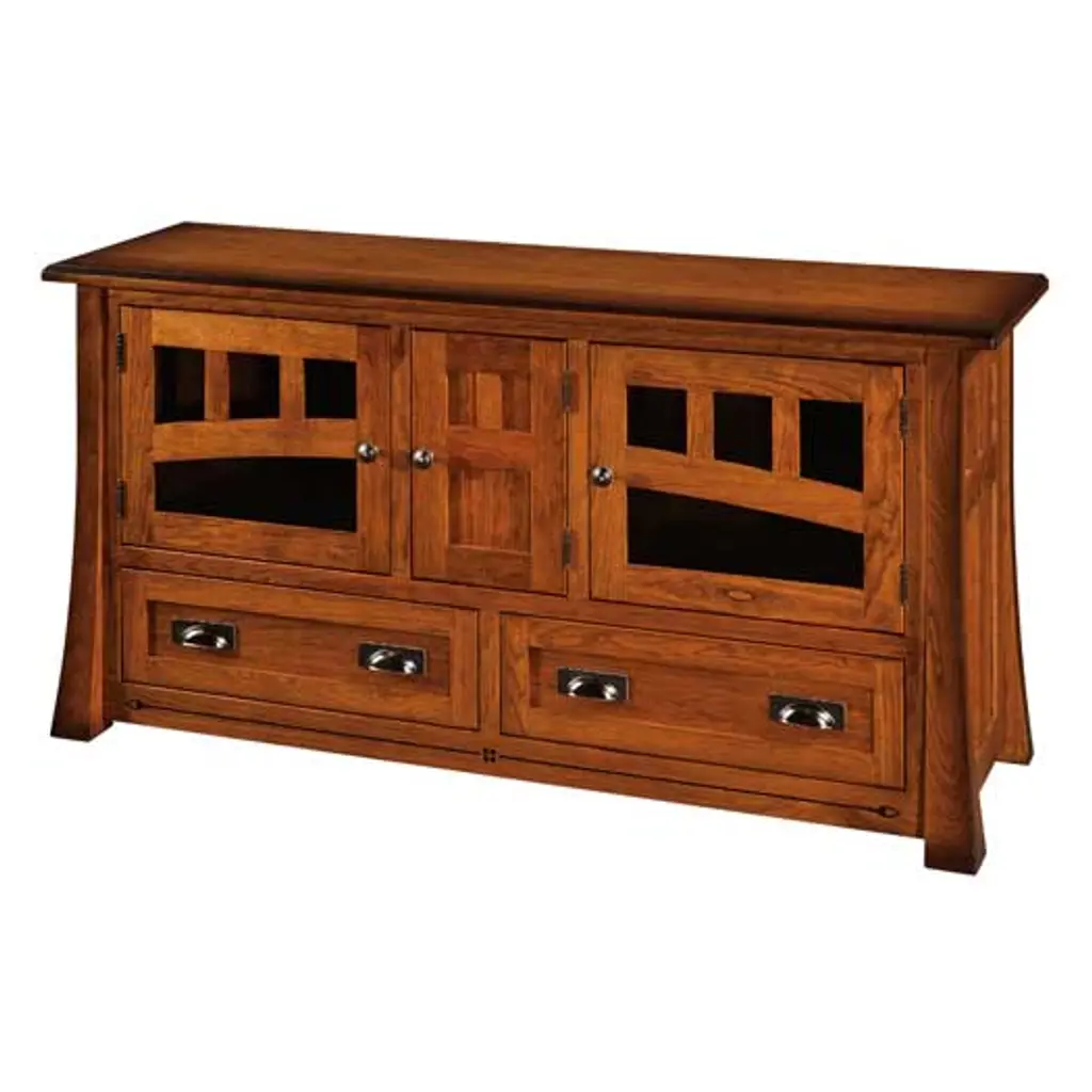 The endearing styling of the Amish Brayfort TV Cabinet is sure to bring in a blend of style and function to your home. The flared silhouette of this media cabinet is beautifully complemented with a double-door cabinet followed by spacious drawers around the base.