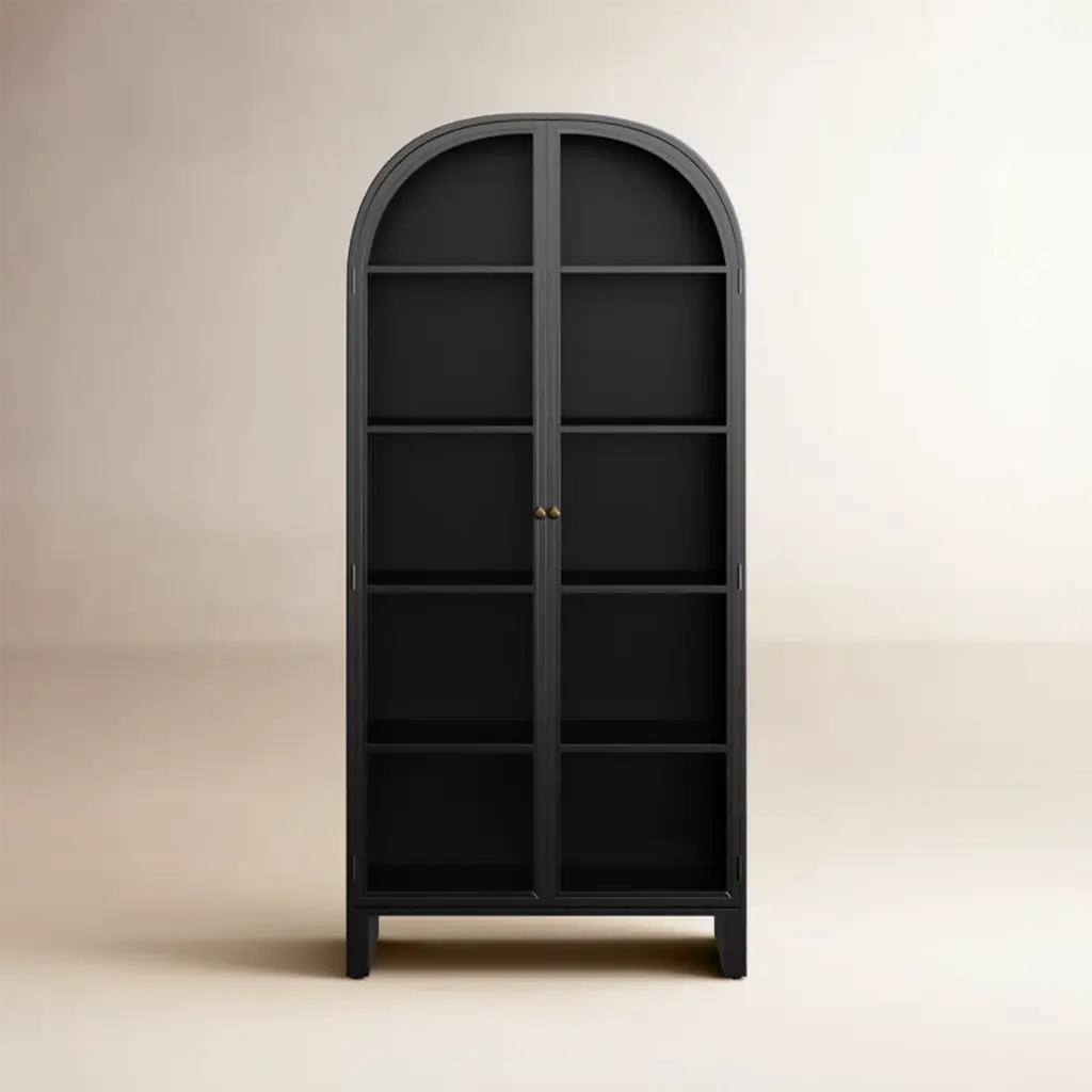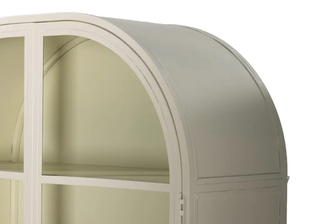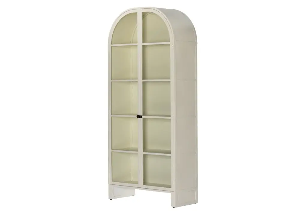 The Breya makes a clean, fresh statement with its curved silhouette complemented by ample storage and two glass doors. Its neutral cream coloring styles elegantly into offices, bedrooms, or living rooms for an added touch of refinement.