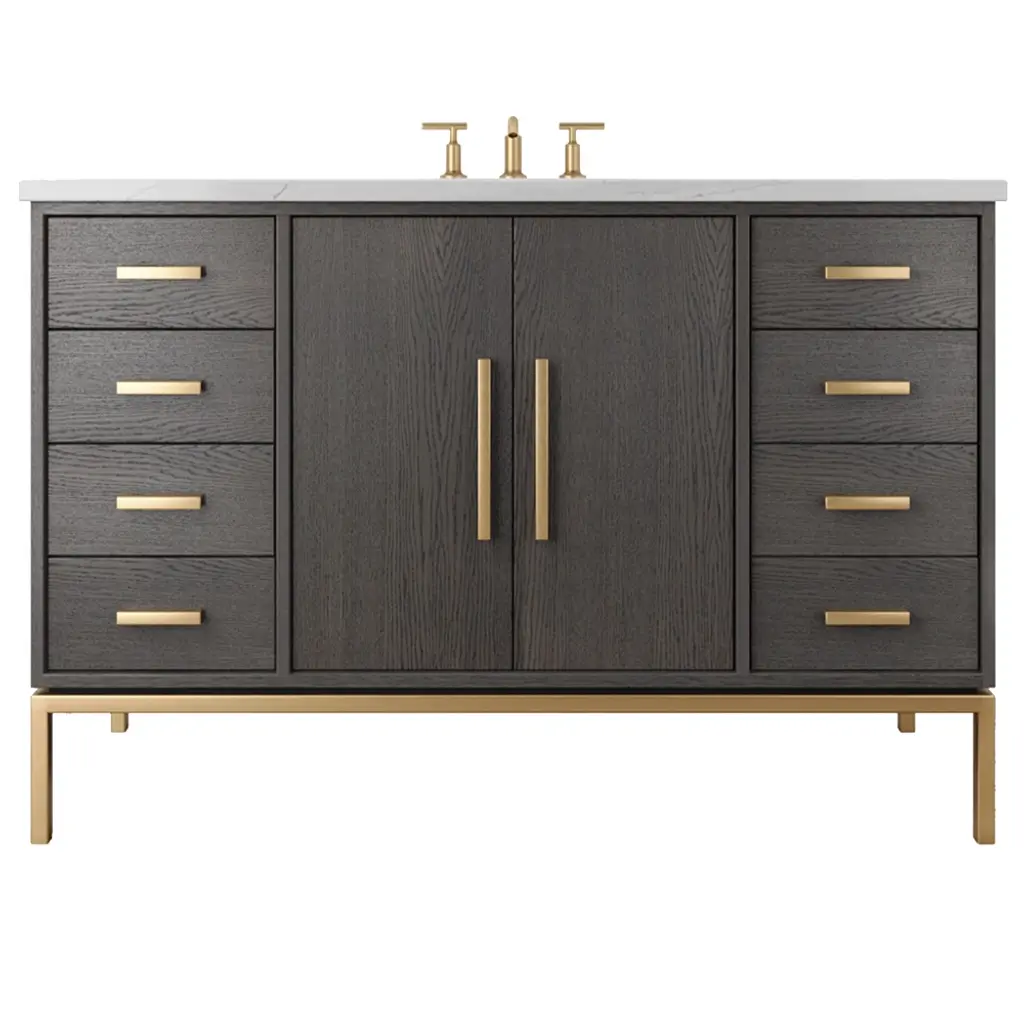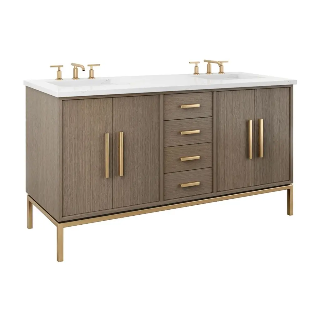 Introducing the Briar White Oak Double Bathroom Vanity, a masterpiece of Neo Modern design that promises to elevate your bathroom into a sanctuary of elegance and functionality. This exquisite vanity is crafted with a keen eye for detail, featuring two spacious sink cabinets and four centrally positioned drawers, offering ample storage for all your essentials. The rift cut white oak veneer exudes a timeless charm, beautifully complemented by a sleek metal base. Available in a variety of sizes and finish combinations, the Briar White Oak Double Bathroom Vanity is designed to seamlessly blend with any decor, making it the perfect centerpiece for your bathroom. Let this stunning piece transform your space into a haven of sophistication and style.
