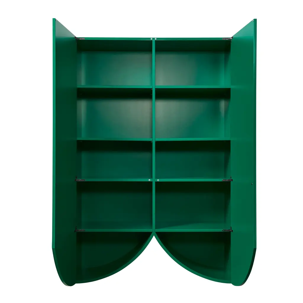 Designed by the Belgian duo Muller Van Severen, this collection of cabinets evolved from their series of 'Wave' vases, incorporating the vase silhouettes into handmade cabinets with distinctive cutout bases. The cabinets stand out with their refined colors and glossy finishes, adding a sculptural beauty to any space. Each piece in the Bridges collection can function alone or combine to create a vibrant and spacious architectural element full of personality.