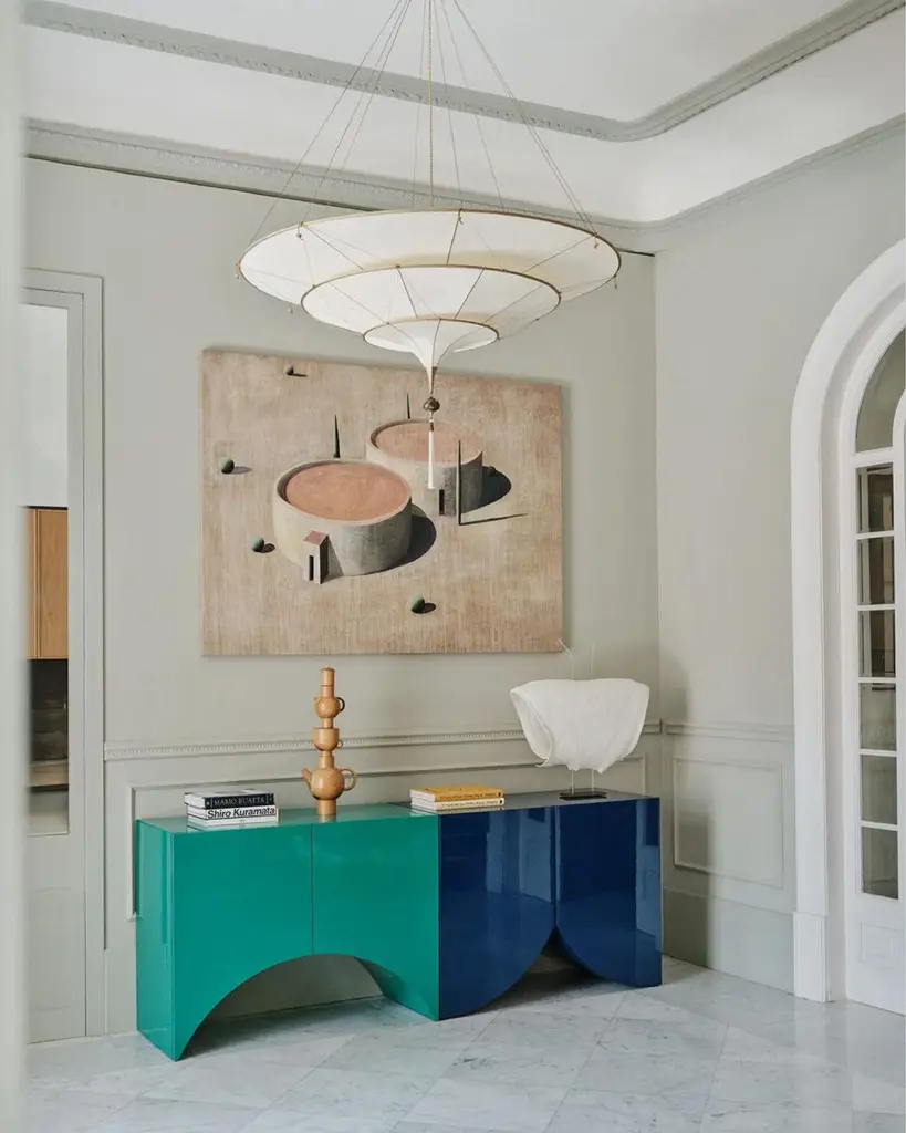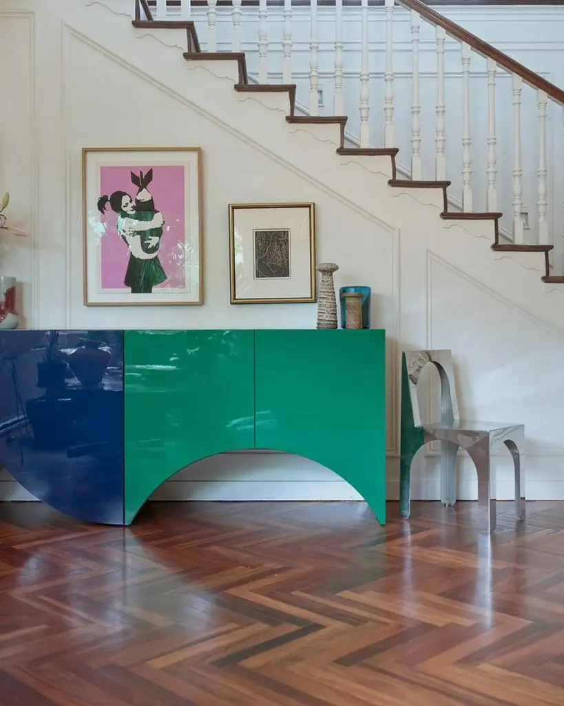 Bridges is a collection of cabinets designed by Muller Van Severen. MVS developed the cabinets from their series of ‘Wave’ vases. The vase silhouettes were brought into handmade cabinets with unique cutout bases that transcend function. Their refined colours and glossy finishes emphasise structure, standing out with a sculptural beauty. Alone or as a whole, the Bridges cabinets create a colourful architecture that is vibrant and spacious and, of course, full of personality.Finishes:• High gloss lacquer Aubergine• High gloss lacquer Blue• High gloss lacquer Green• High gloss lacquer RedDIMENSIONS:120 x 52 x 90 cm47,2 x 20,5 x 35,4 inAvailable in different sizes and finishes.Optional glass top.Please inquire with us.