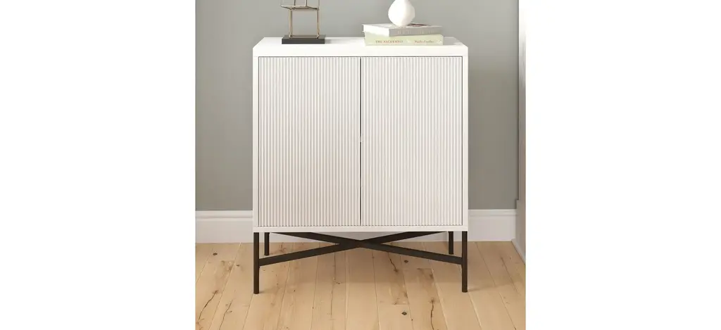 This sturdy and compact Brighton Accent Cabinet is designed to give you a flexible storage option wherever you need it, whether its for office supplies, closet overflow, or just the various knick-knacks and doo-dads that dont have a space of their own. Featuring an adjustable center shelf and cable management cut-out, this versatile cabinet can even help you organize printers, game consoles, or charging stations. The wood-grained finish adds warmth and casual appeal while the hidden storage behind the two textured PVC doors allows you to hide away all the odds and ends that create visual clutter around your home.