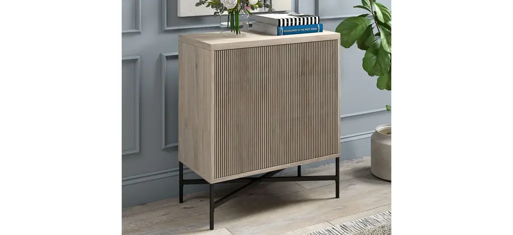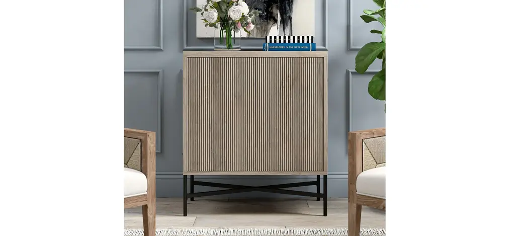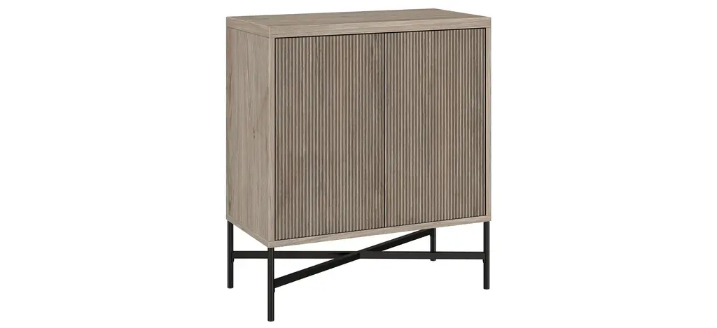 This sturdy and compact Brighton Accent Cabinet is designed to give you a flexible storage option wherever you need it, whether it's for office supplies, closet overflow, or just the various knick-knacks and doo-dads that don't have a space of their own. Featuring an adjustable center shelf and cable management cut-out, this versatile cabinet can even help you organize printers, game consoles, or charging stations. The wood-grained finish adds warmth and casual appeal while the hidden storage behind the two textured PVC doors allows you to hide away all the odds and ends that create visual clutter around your home.