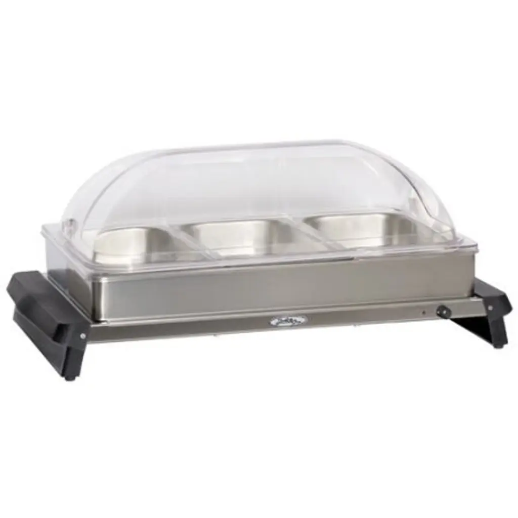Broilking Professional Warming Cabinet W/ Family Size Buffet Server - 4 1/3 Size Pans And 4 1/3 Size Lids - Stainless Steel & Clear