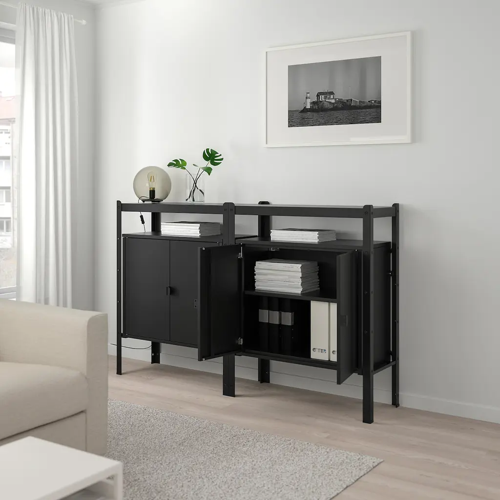 BROR Cabinet with 2 doors - black 29 7/8x15 3/4x26 ". 10 year Limited warranty. Read about the terms in the warranty brochure. The cabinet fits in BROR storage system or you can also use it freestanding. Only for indoor use. This furniture must be secured to the wall.