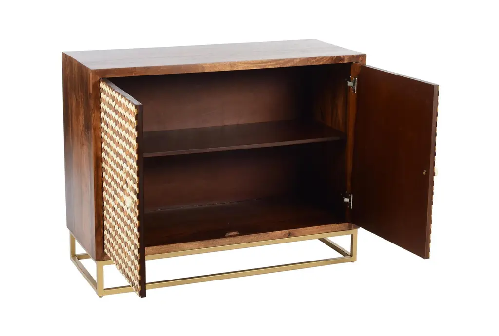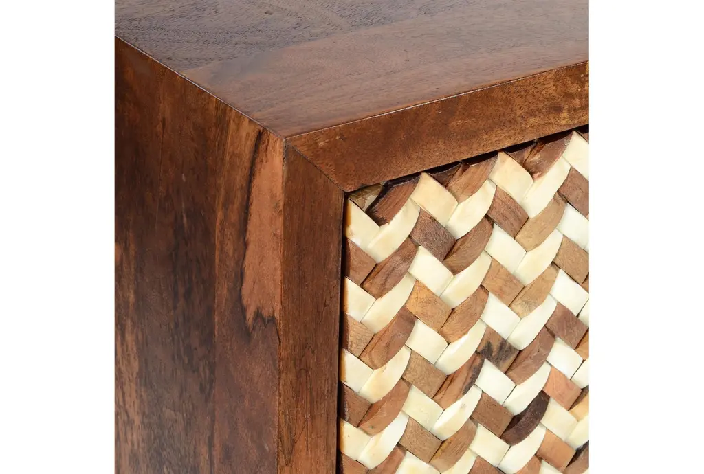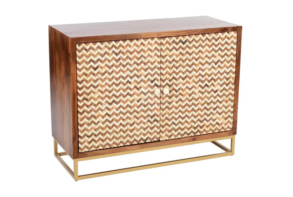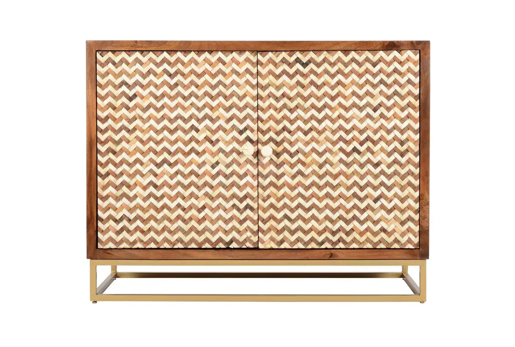 Brown Bone Inlay Chevron Cabinet