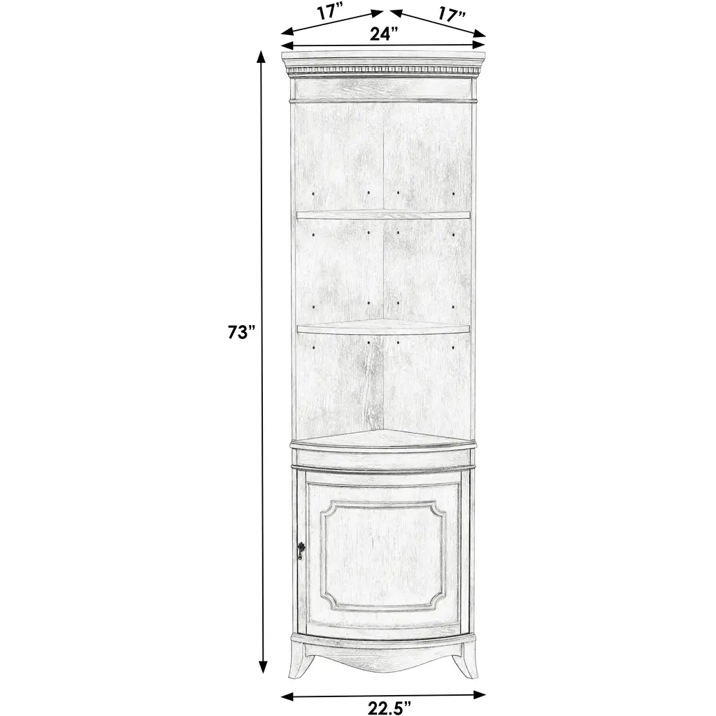 Butler Specialty Company Dowling 24 in. W x 73 in. H Quarter Round Wood Corner Cabinet with 3 Open Shelves and 1 Lower Storage Cabinet, Pastel Blue