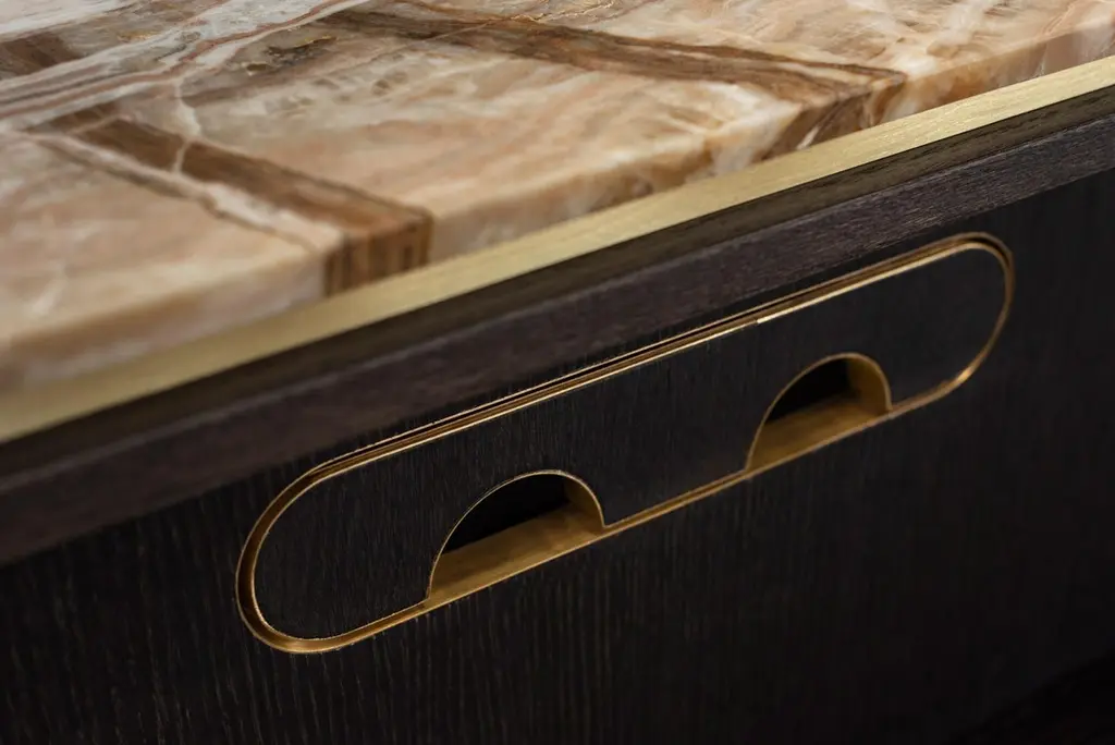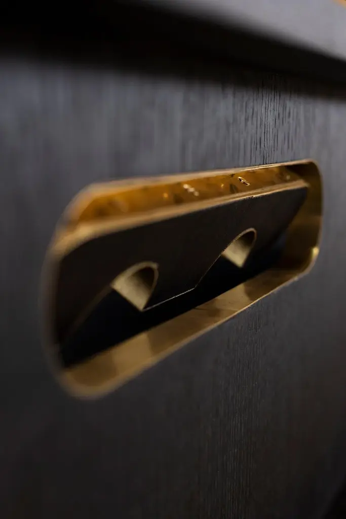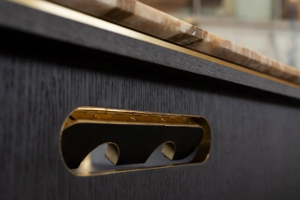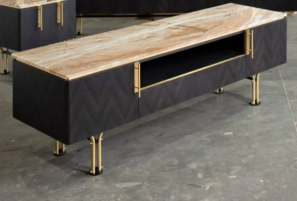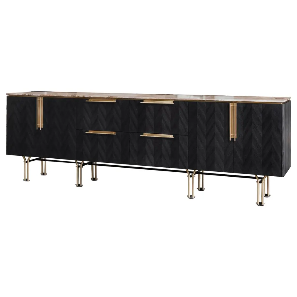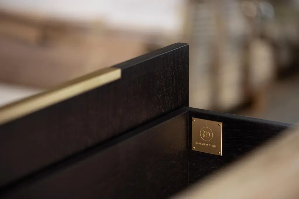 Cabinet RTV by Magdalena TekieliDimensions: L 180 x D 55 x H 60 cmMaterials: brass, metal, oak, marble.