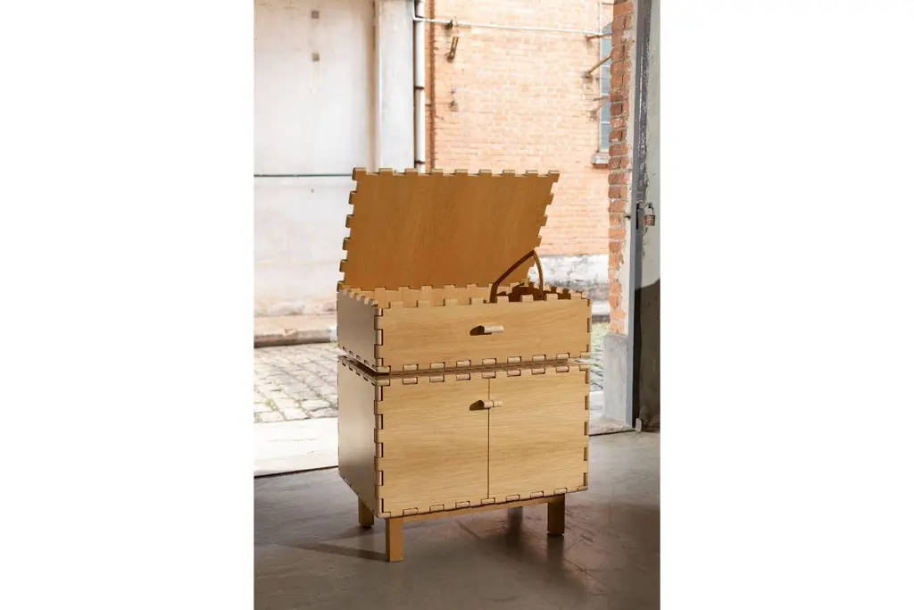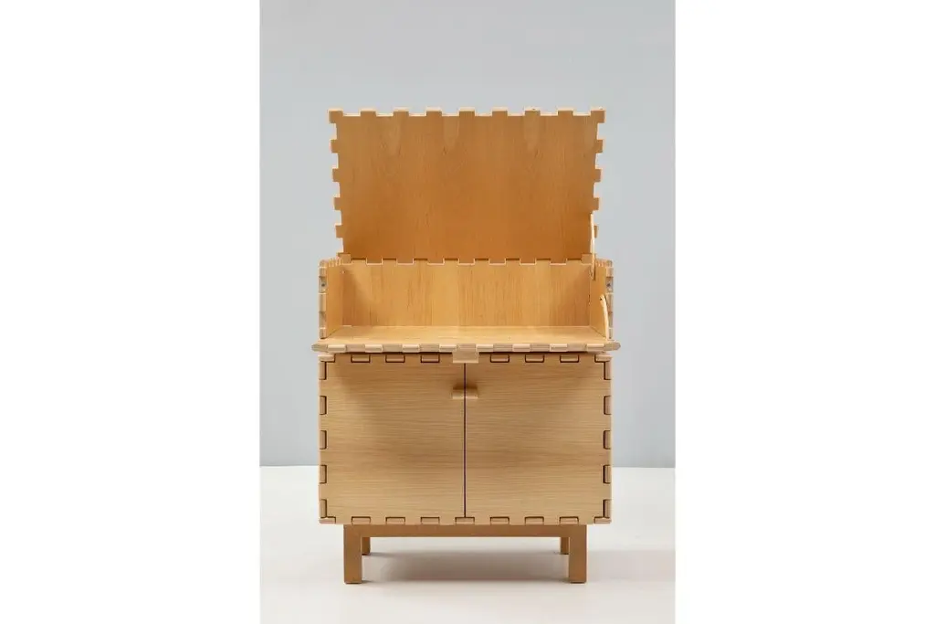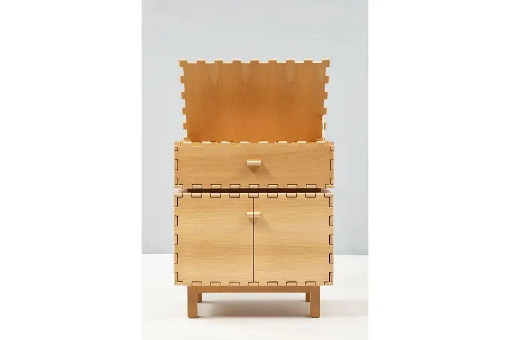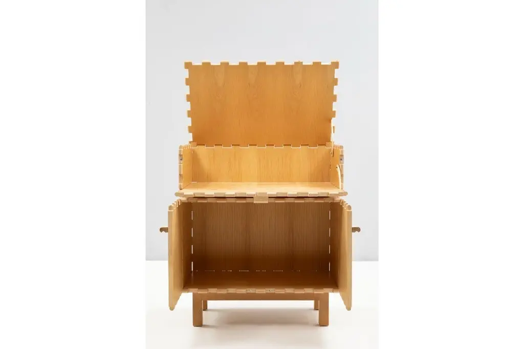Cabinet with Display Box by Luis Pons.Dimensions: W 66 x D 44 x H 79 cm.Materials: plywood, walnut, hand-crafted.Also available in different colors.Tangara envisions a new meaning for the wood hinge, a feature that was previously crafted by Vermeil and rethought by Pons to create a brand-new family of furniture pieces. The modular qualities of the cabinets, finishes, and colors, means they can be separated or grouped together to create multiple configurations that adjust to the users’ needs.Luis Pons has gained international recognition for his designs of hotels, private residences, and commercial properties as well as furniture and home interior objects. His designs have been featured in leading domestic and international publications including Architectural Digest, Arquitectura Y Diseño, Architecture & Wohnen, Balthazar L’Magazine de l’homme, Casas, Elle Décor, Hotel Design, House & Garden, Interior Design, Metropolitan Home and Vogue. His works appear in numerous design books, including THE TROPICAL MODERN HOUSE (Rizzoli) and MIAMI INTERIORS (Taschen) and have been featured at leading international art and design expositions, including Art Basel, (Basel, Switzerland and Miami, USA) and the International Furniture Fair (Milan, Italy).