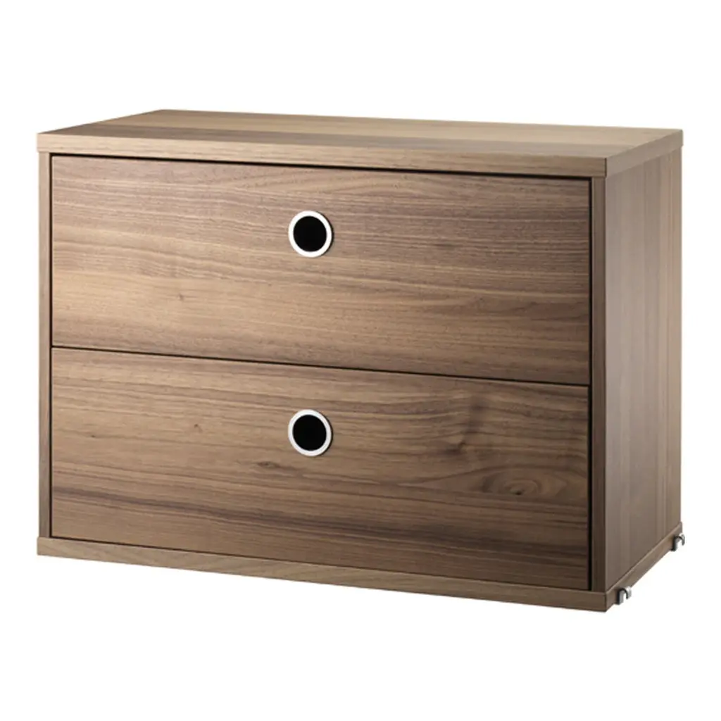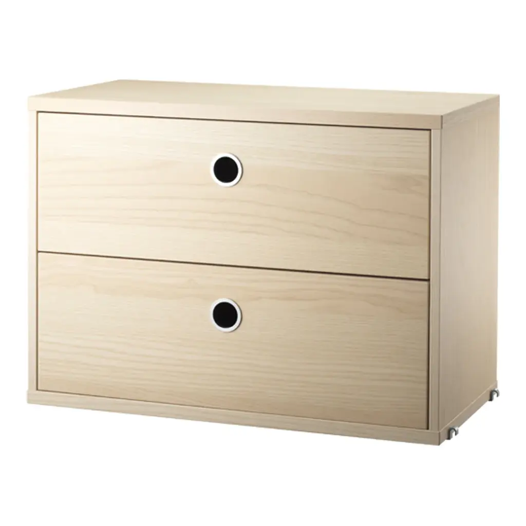 The chests of drawers are available in two widths, 78 and 58 cm, and one depth, 30 cm. The chests of drawers fit into all 30 cm deep wire and plex panels from String® System. They are designed with two drawers to offer hidden storage in your shelving combination. The chests of drawers are a great fit in either the hallway, living room or kids' room where the need for hidden storage often is big. Chest of drawer w58 x d30 x h42 cm has internal dimensions (for each drawer) depth 23.7 cm, width 51.3 cm and height 16 cm. Chest of drawer w78 x d30 x h42 cm has internal dimensions (for each drawer) depth 23.7 cm, width 71.3 cm and height 16 cm. The chests of drawers are delivered unassembled.
