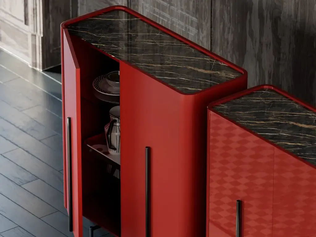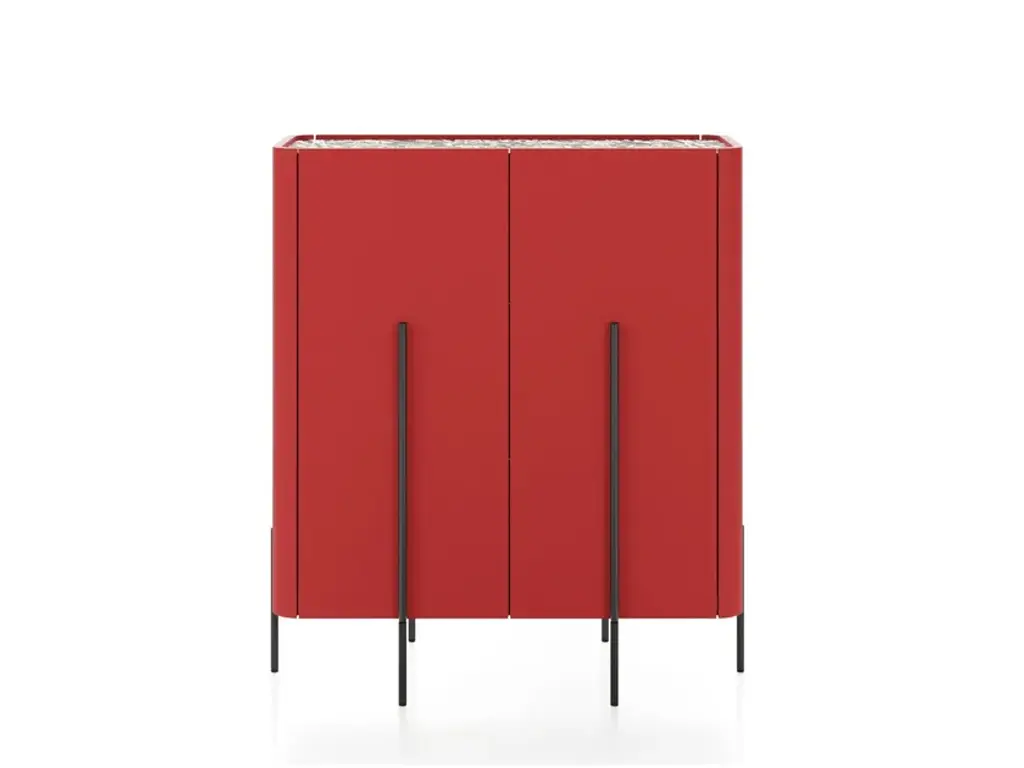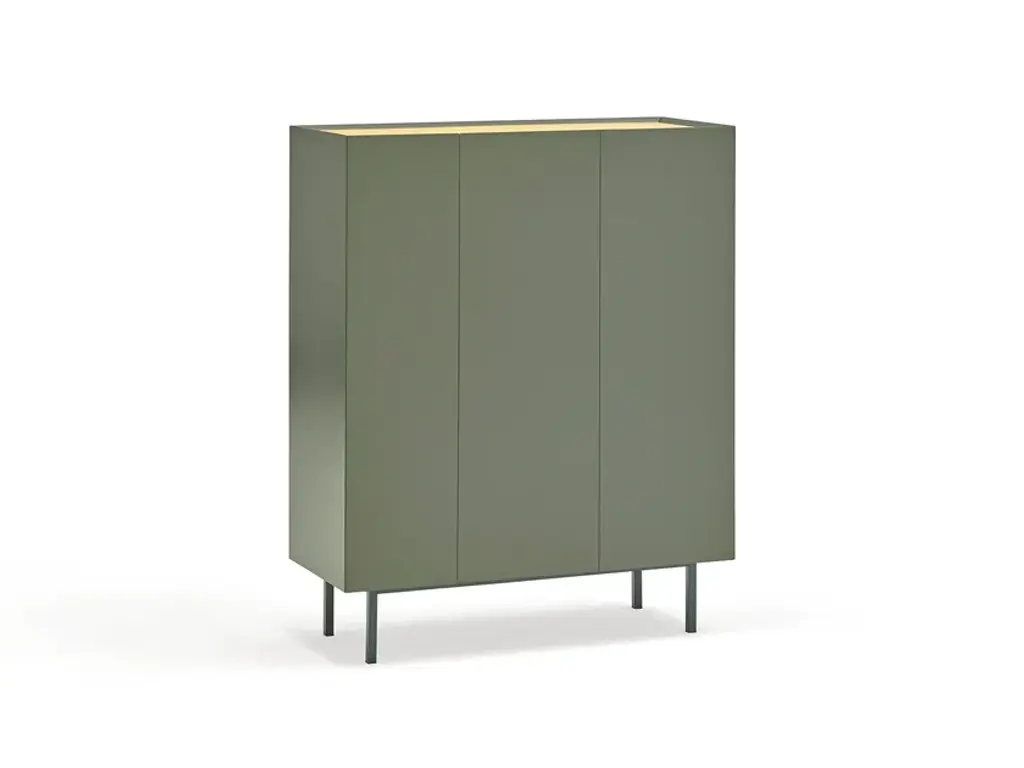 CAILLOU is a lacquered MDF highboard with doors.Frame and doors: 18 mm thick MDF wood, lacquer (RAL) or wood effect finish of your choiceTop (optional): 6 mm thick back-lacquered or ceramic glassFoot: powder-coated metal footFrom the creative vision of Liu Jo was born the custom-made living room. Craftsmanship, versatility, style and sustainability come together to enter the world of home and transform the furniture. Liujo’s living collection is a declaration of intent: new forms and customizable materials open the space to new reading keys and give life to unique pieces. The house is dressed and changed to meet all the needs of everyday life detaching from the classic nomenclatures and running on elegant lines, delicate finishes, soft fabrics and customizable colors. Not only sofas, poufs or armchairs, but design with a strong identity, free, sectional and removable, with irregular and fresh shapes that revolutionize the environment. Recognizable and iconographic in ideas, shape and finish, the pieces of furniture by Liu Jo find their reason for being in contrast: structures and rigid elements are designed to contain and embrace curves and movements, enhancing personal style and easily changing position and function.