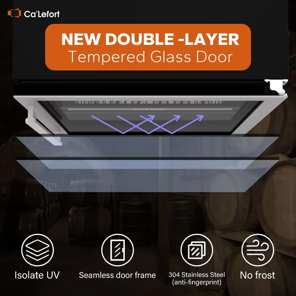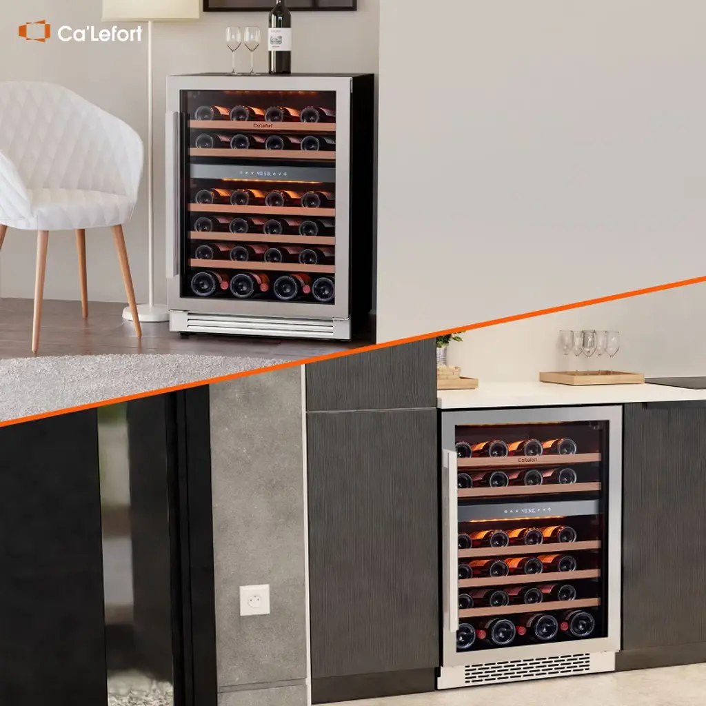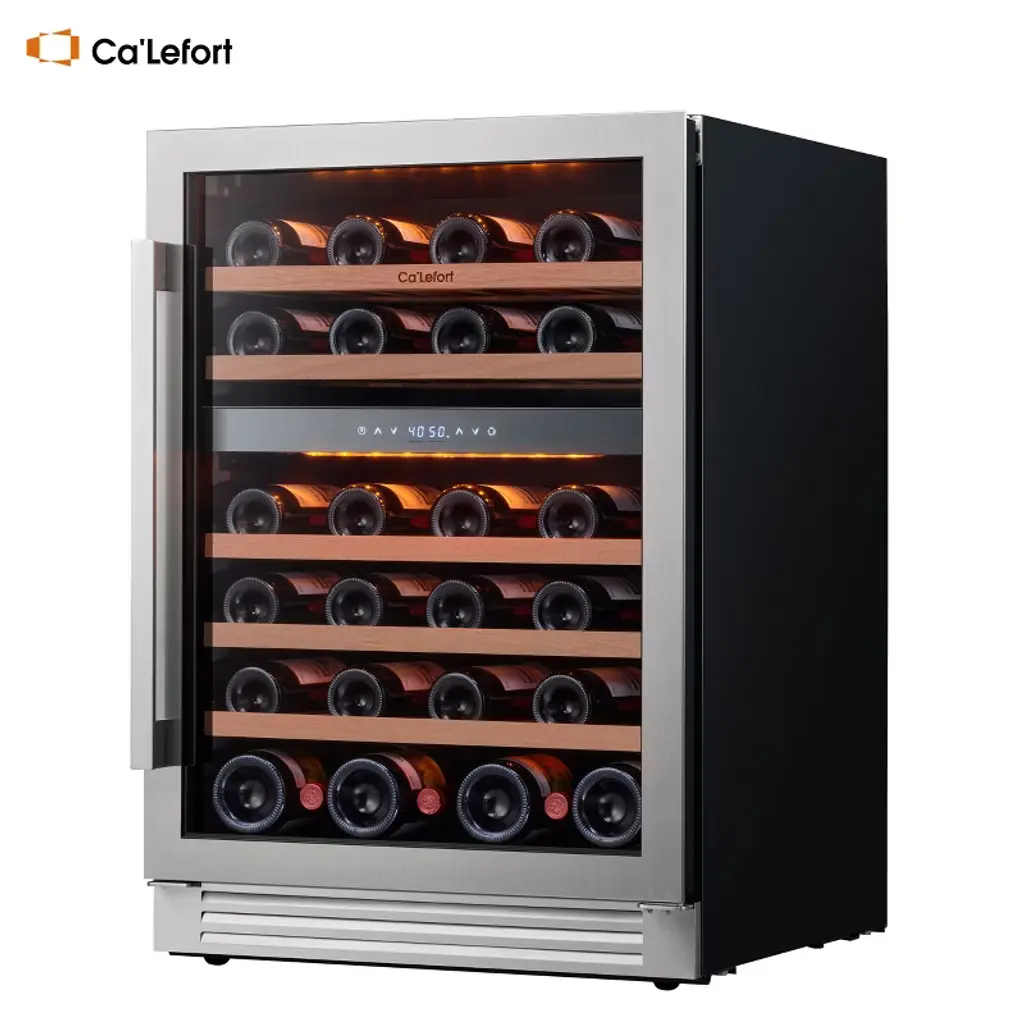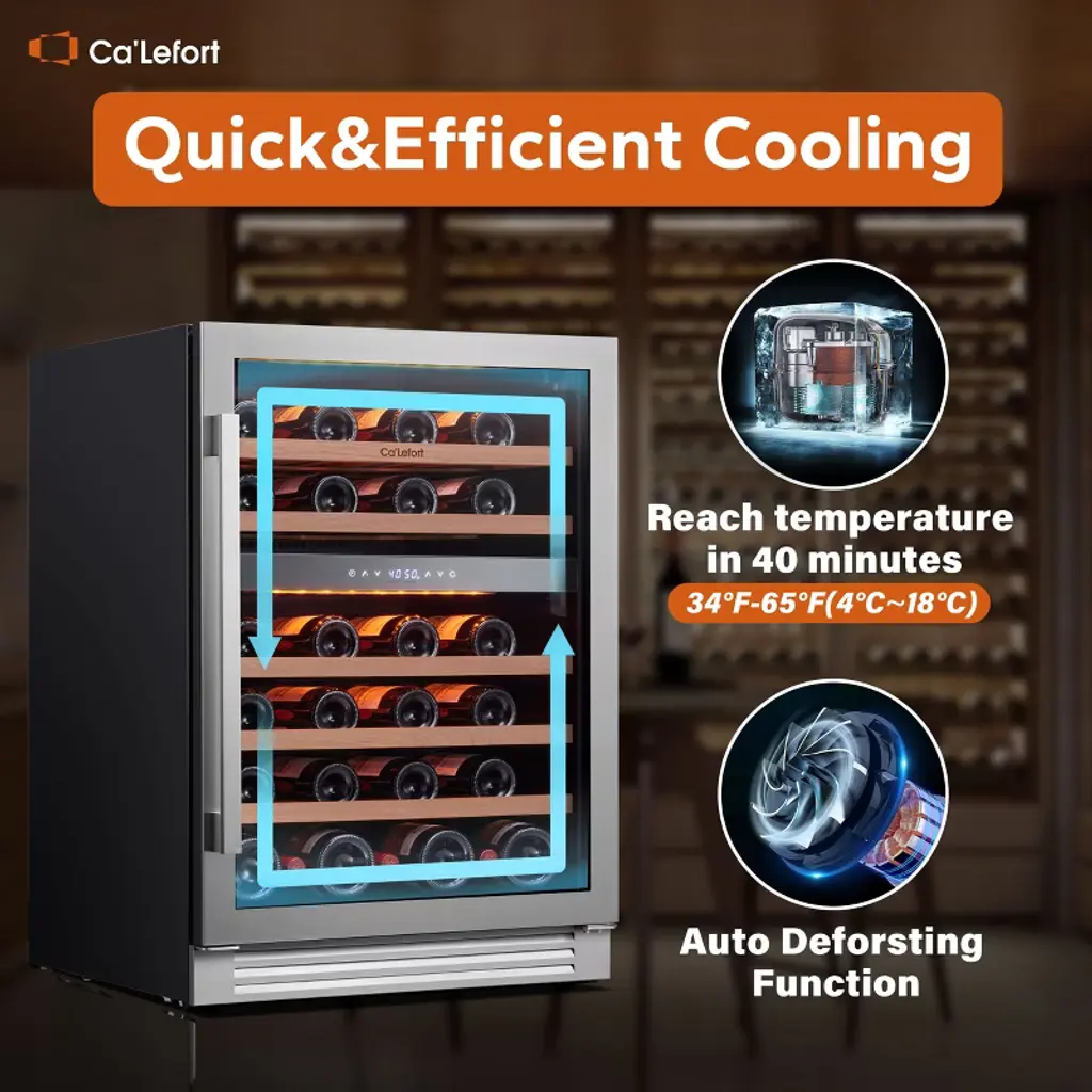 Ca'lefort 24" Dual-zone Wine Cooler, Holds 46 Bottles, Glass Door, Powerful Compressor, 3 Led Lights