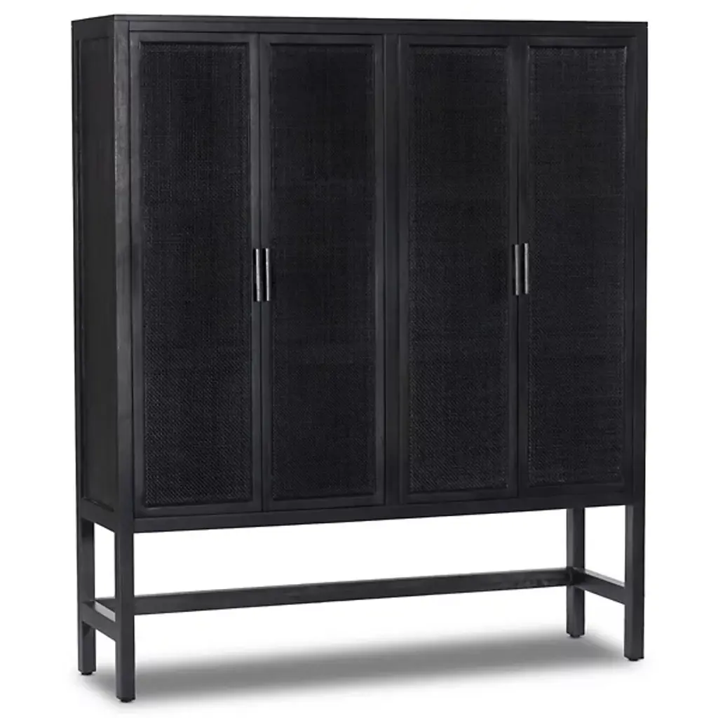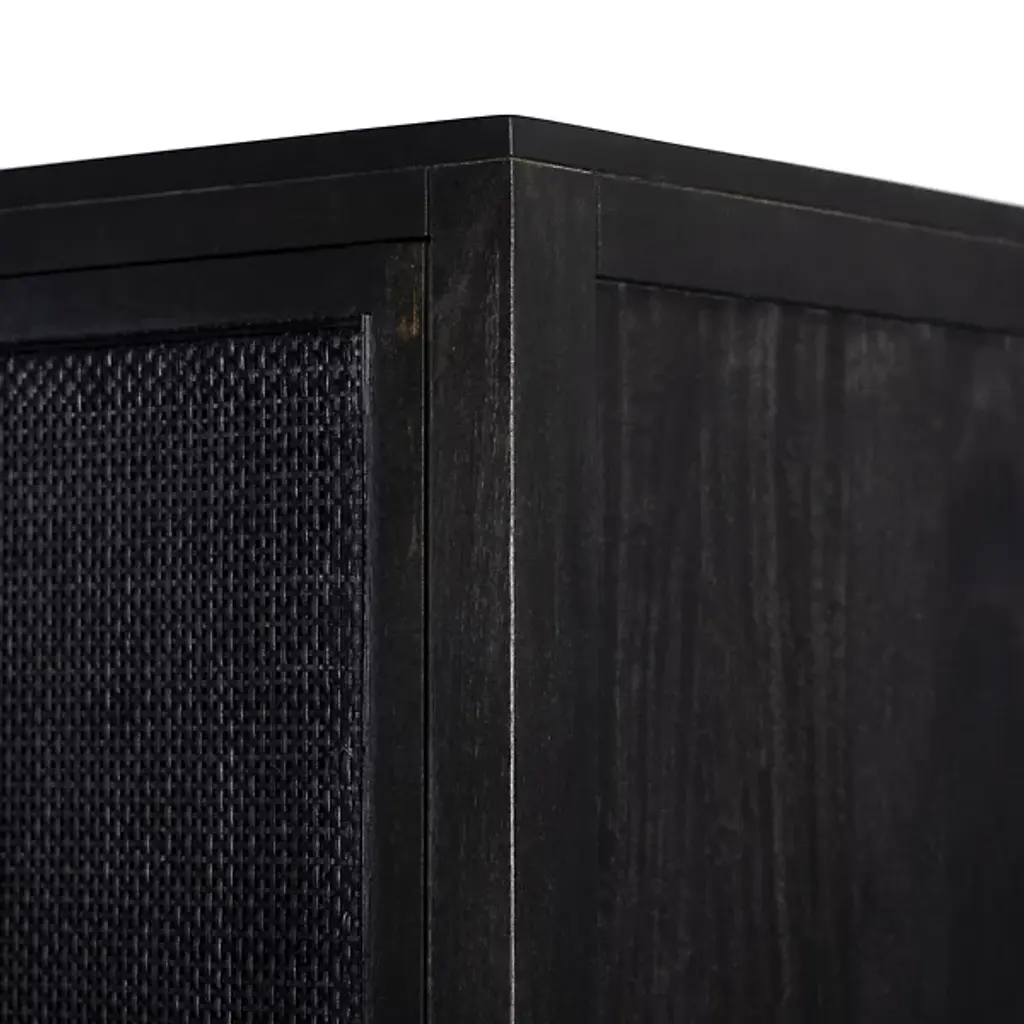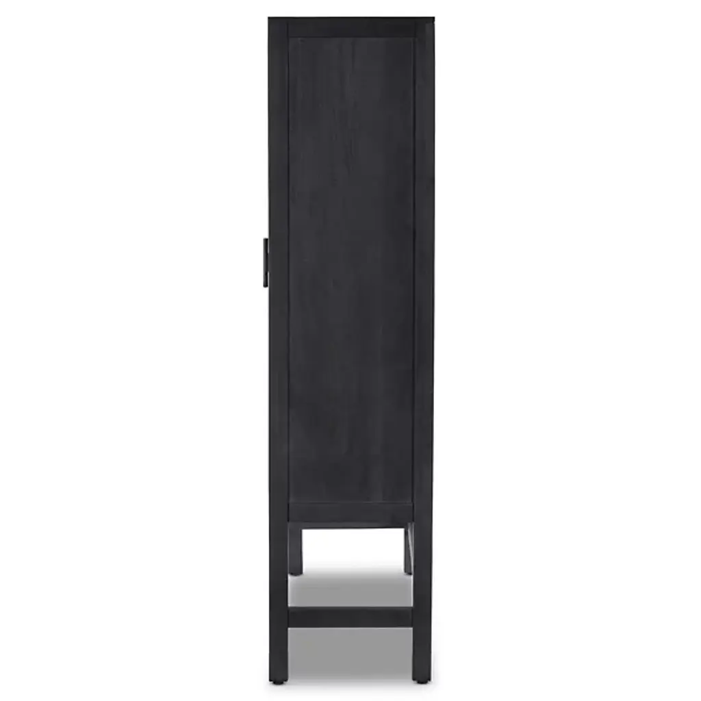 The Caprice Cabinet from Four Hands challenges traditional storage design through its dual-personality construction. Woven cane door panels filter light while revealing shadowy glimpses of contents inside, creating an element of mystery absent in solid-door cabinetry. The washed mango wood frame establishes a bold contrast against the natural cane, highlighting both materials' inherent qualities. Mortise and tenon joinery eliminates the need for visible hardware, allowing the materials to speak for themselves. Built-in levelers ensure stability on uneven surfaces. The generous interior shelving accommodates everything from dishware to books, while the cabinet's architectural presence makes it suitable as a standalone statement piece.