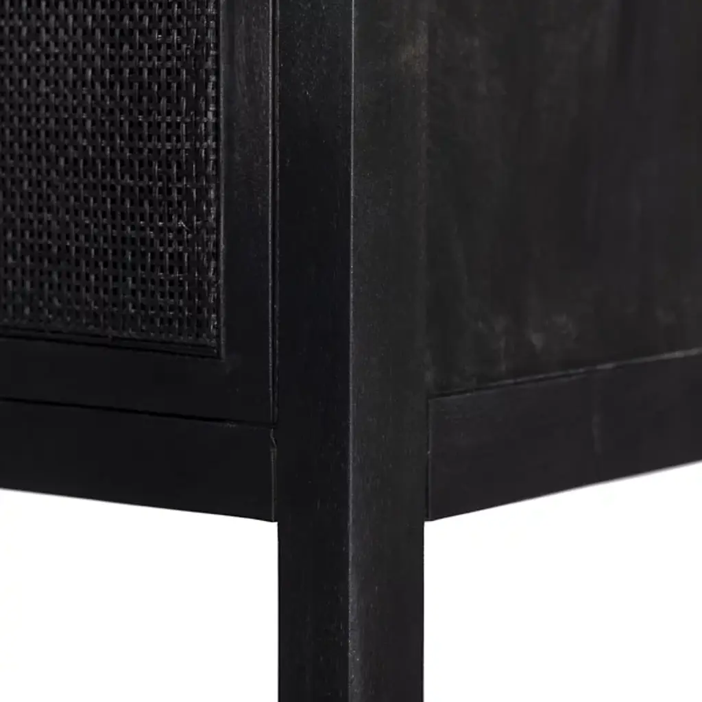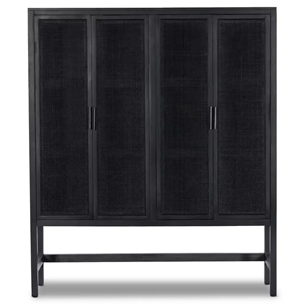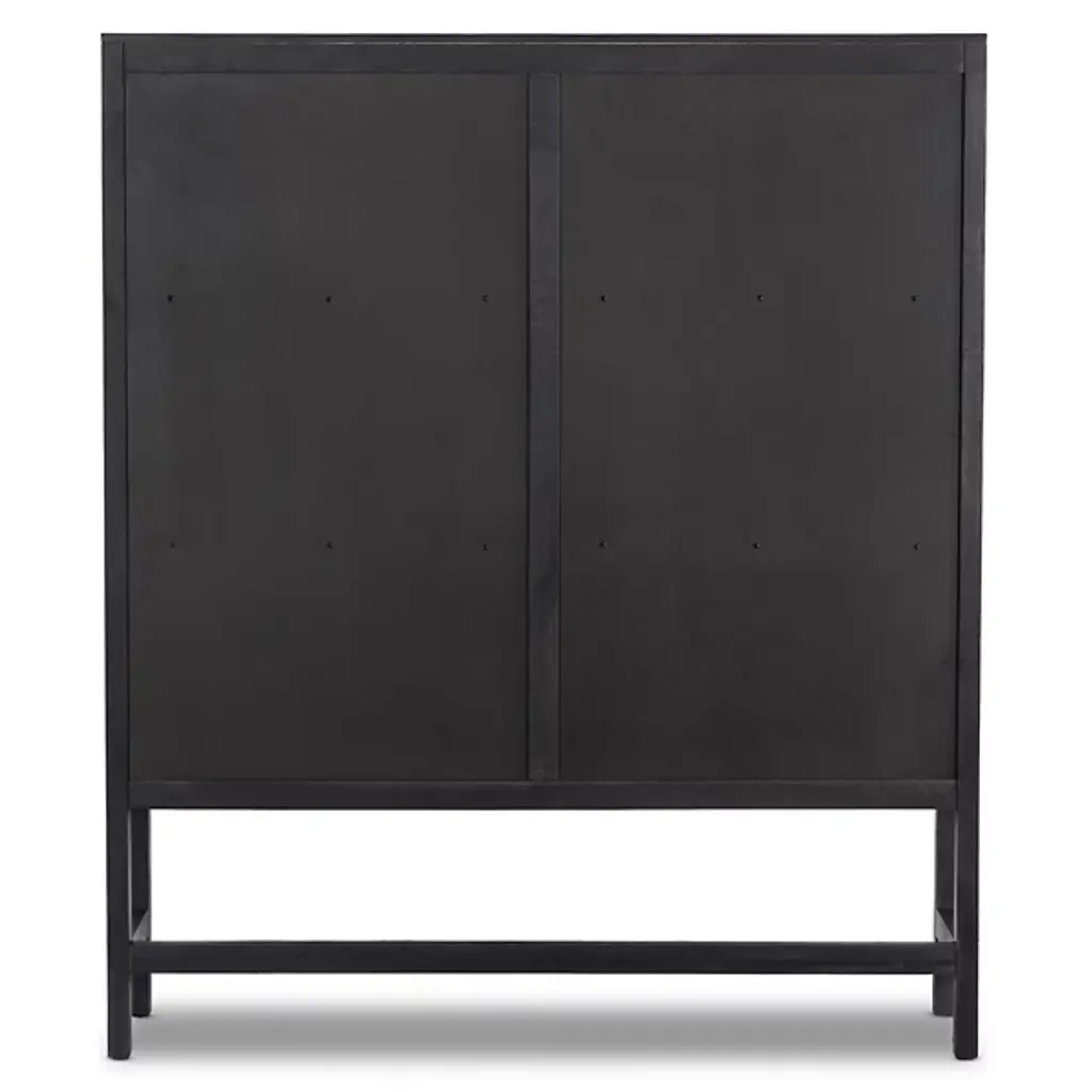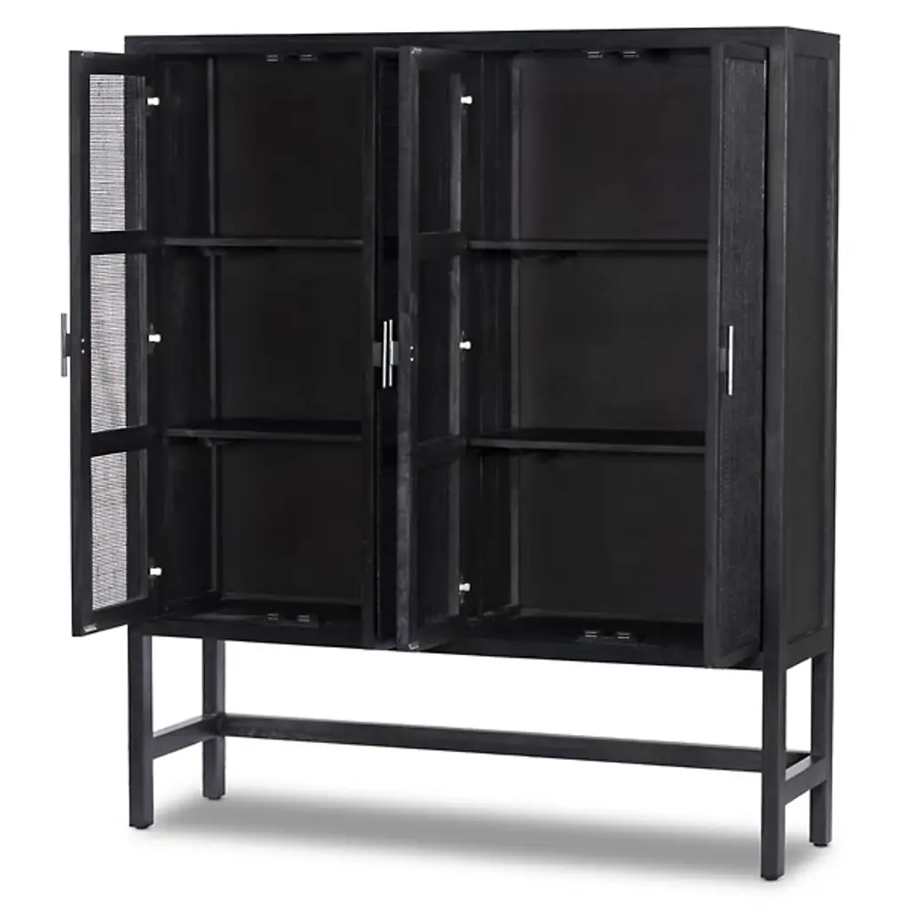 The Caprice Cabinet from Four Hands challenges traditional storage design through its dual-personality construction. Woven cane door panels filter light while revealing shadowy glimpses of contents inside, creating an element of mystery absent in solid-door cabinetry. The washed mango wood frame establishes a bold contrast against the natural cane, highlighting both materials' inherent qualities. Mortise and tenon joinery eliminates the need for visible hardware, allowing the materials to speak for themselves. Built-in levelers ensure stability on uneven surfaces. The generous interior shelving accommodates everything from dishware to books, while the cabinet's architectural presence makes it suitable as a standalone statement piece.