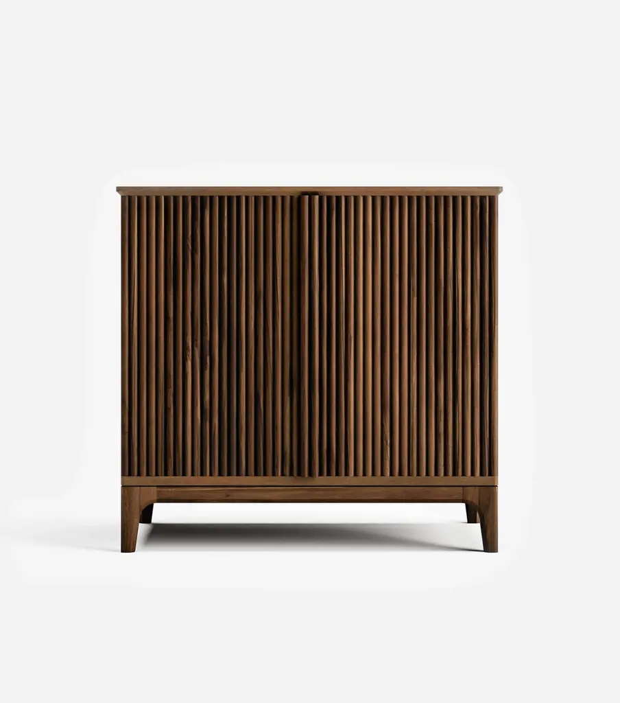 Carlito Walnut Cabinet by Atelier BloubergUnique Piece.Dimensions: D 44 x W 65 x H 140,5 cm.Materials: Walnut.Available in walnut and oak. Please contact us.Ruben Van Lerberghe is a furniture designer and maker. He was born in Cape Town and raised in Antwerp. He has set up Atelier Blouberg in Marseille to create unique and bespoke furniture.“Designing and creating a piece is a very intimate experience, where authenticity is key. Making it without compromise, I want to transmit a sentiment of seduction and ultimately of comfort.”Ruben started out working on timber roof structures and general carpentry.After an immersion in traditional joinery in Japan, he trained with different furniture makers in Paris and Marseille.To master the art of fine furniture making, Ruben moved to the UK to study at the renowned Waters & Acland Furniture School. He put his skills into practice, creating commissioned pieces for Waters & Acland.“The encounters I’ve had with natural shapes and man-made structures, living in different parts of the world, have had a formative influence on me. And in my designs I often connect them, using traditional processes and embracing what technology has to offer.”