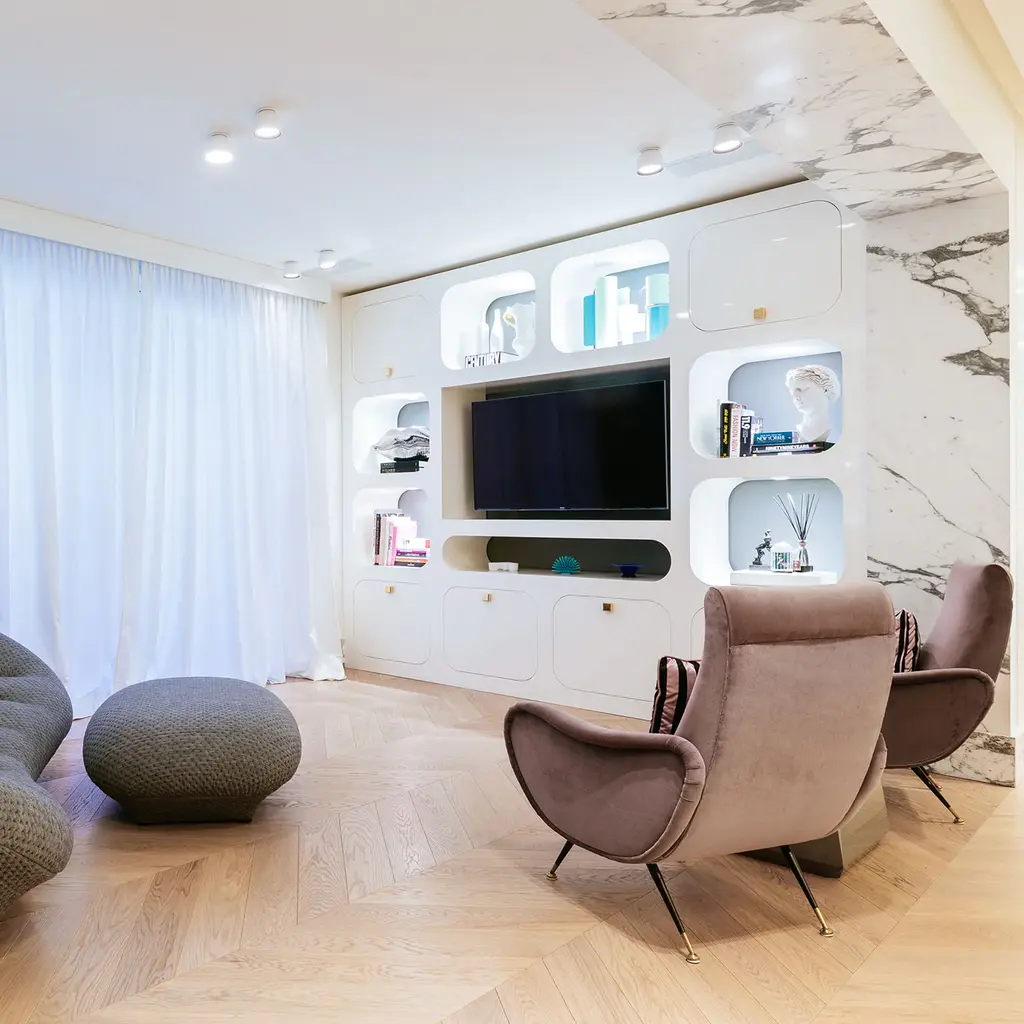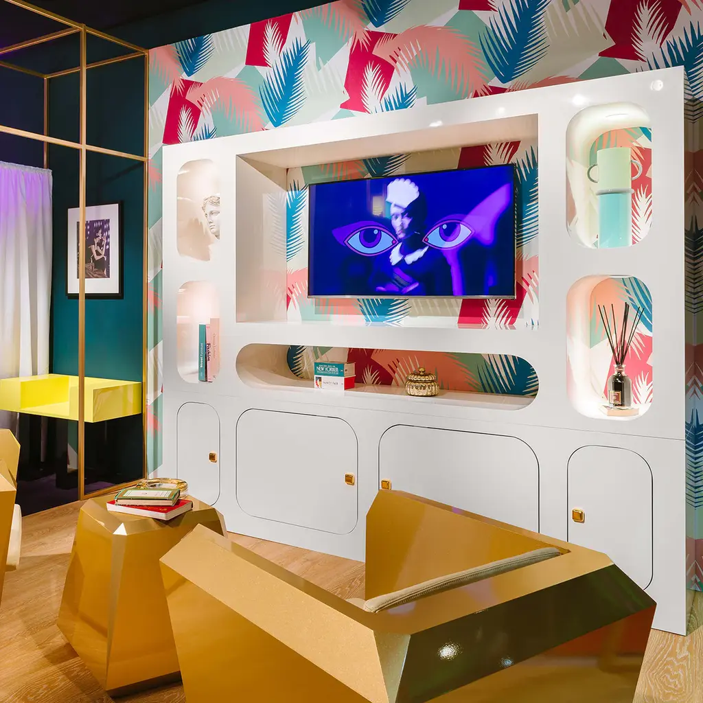An iconic TV cabinet reminiscent of the charming 1950s era, this piece pays tribute to Italy's most cherished television program. Serving as both a functional TV stand and cabinet, this timeless design handmade of white-lacquered metal embodies a unique and stylish aesthetic. Please consult the Concierge for further information.