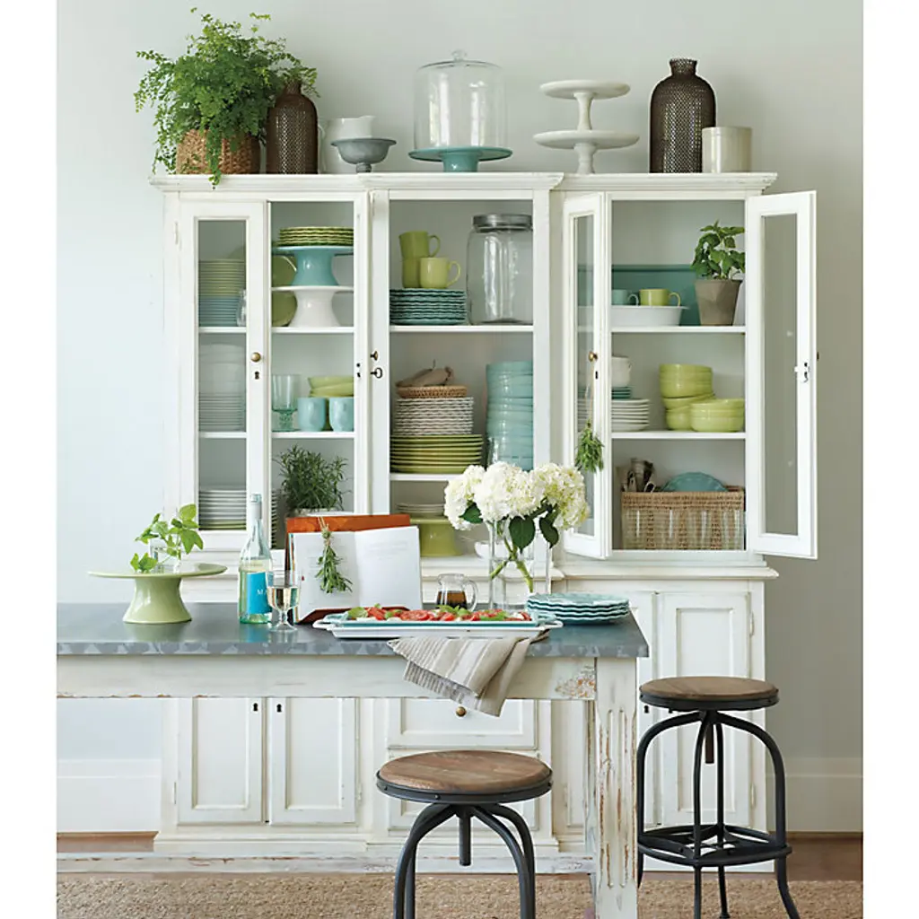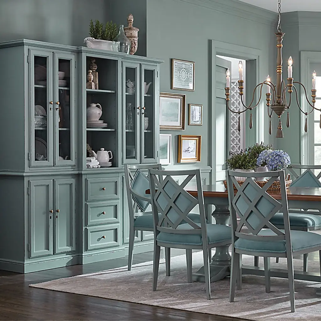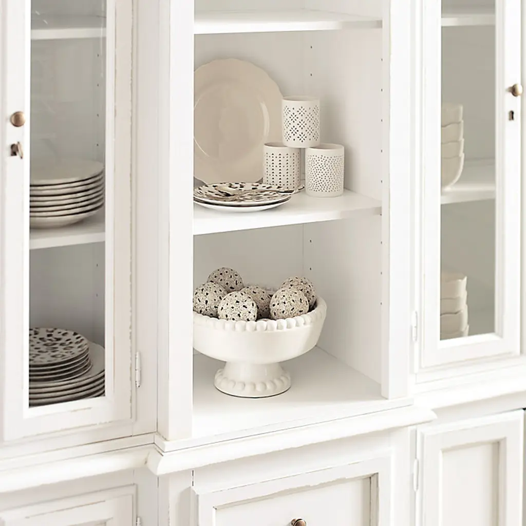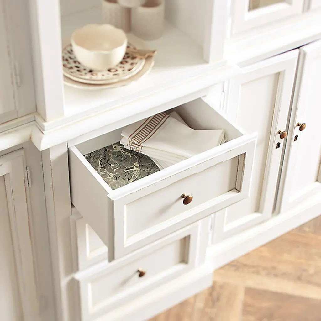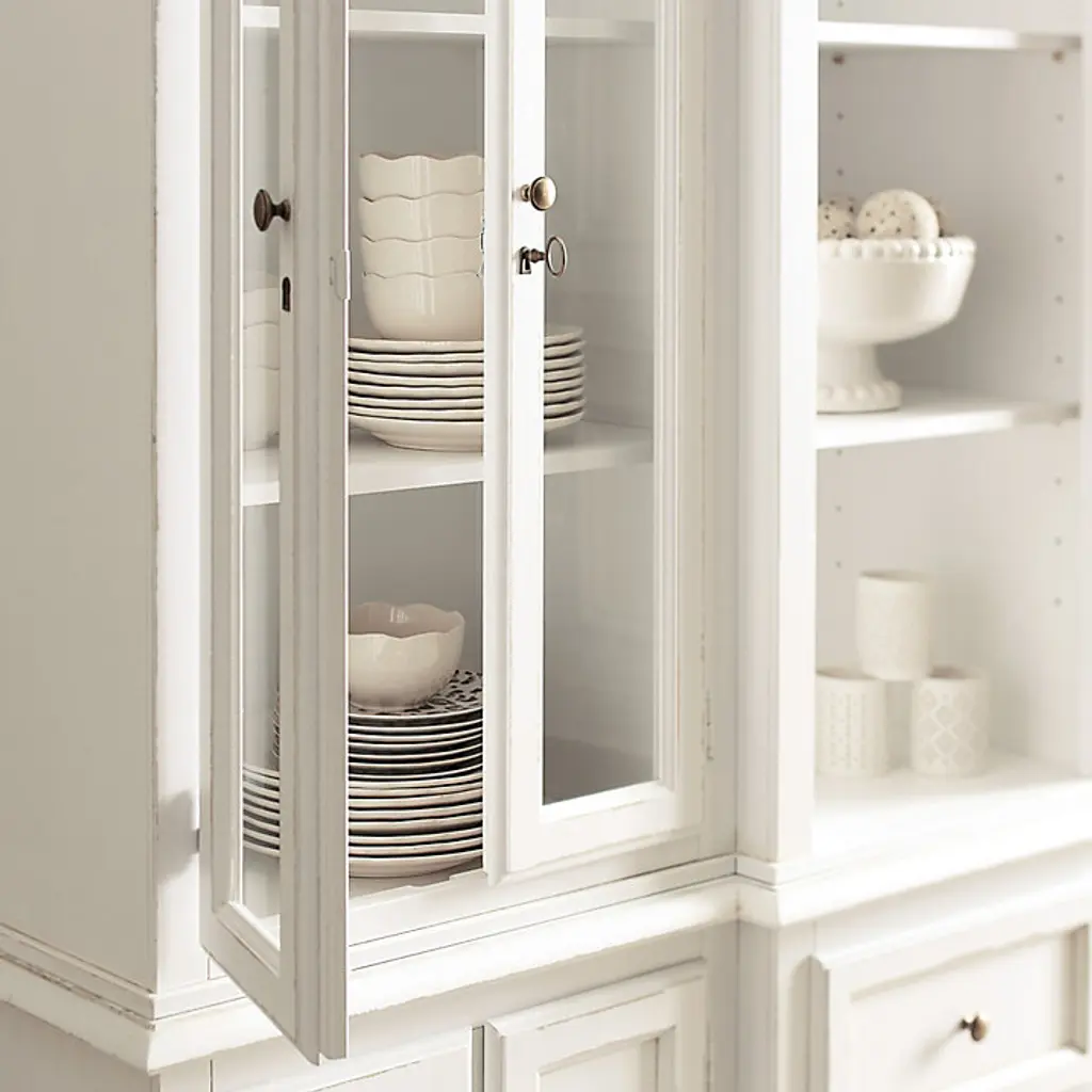 Classic lines and ample storage make our Casa Florentina Piave Breakfront cabinet perfect as a server or buffet in the dining room or kitchen. Three center drawers are flanked by cabinets with one shelf each for storing drinkware and dishes. Hutch features two adjustable center shelves with plate grooves for display and flanking glass-front cabinets with two adjustable shelves each. Console has one adjustable shelf and locking doors. Part of our exclusive Casa Florentina collection, the Piave Breakfront is available in a range of beautiful finishes, from warm rich stains and distressed, hand layered hues to deeply saturated colors. Piave Breakfront features: