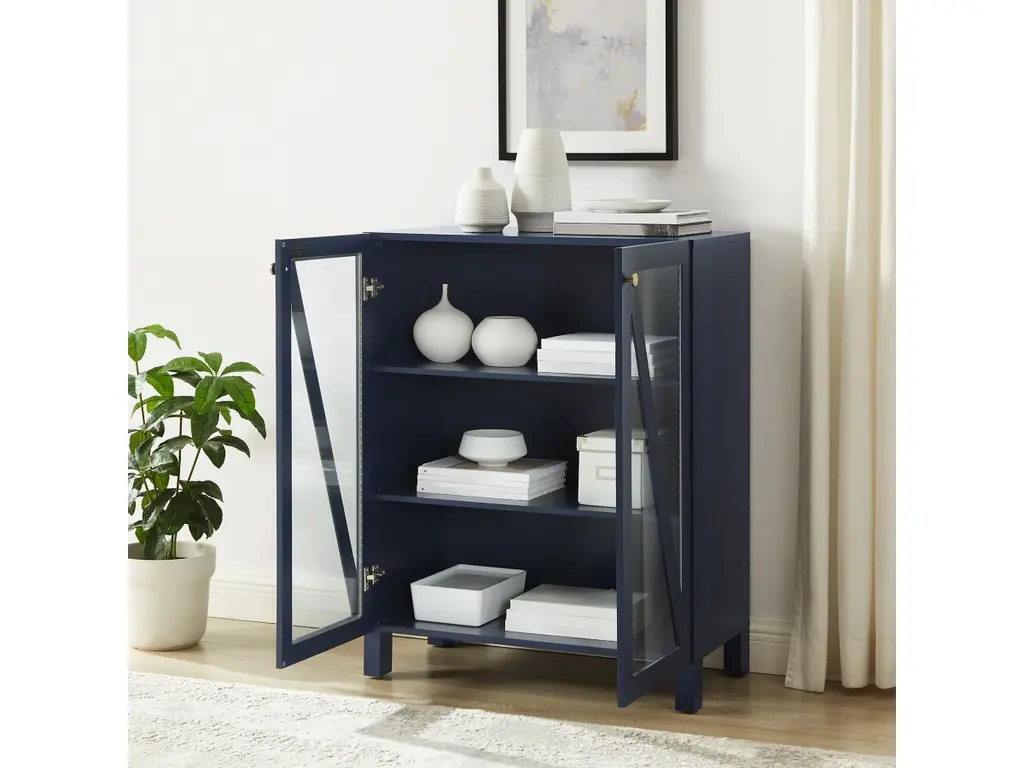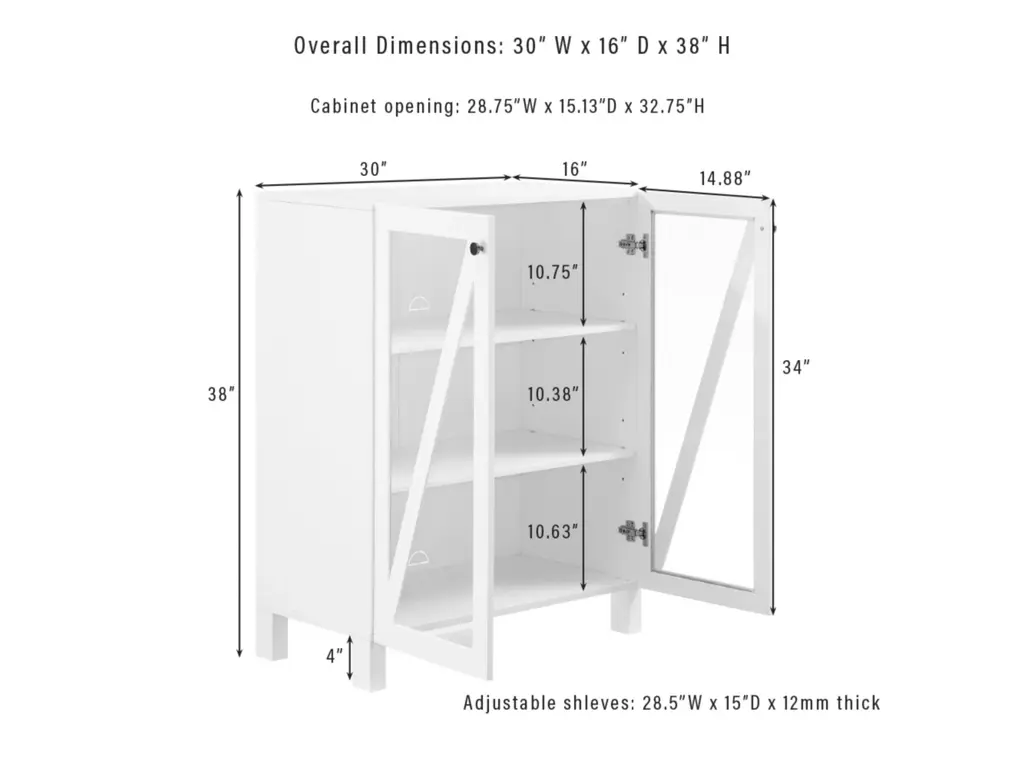 The Cassai Stackable Storage Pantry delivers stylish storage for any room. Featuring two adjustable shelves, this pantry is great for kitchen, bathroom or entryway organization. Showcasing slanted wood accents, the glass doors of the cabinet offer a perfect opportunity to display books, dishware and more.