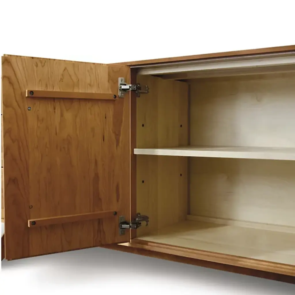 The mid-century inspired Catalina Cherry Five-Drawer/Two-Door Buffer offers plenty of storage for the modern dining room. This modernist buffet is divided with four drawers on one side and 1-drawer over a 2-door cabinet on the other. The drawers and doors feature soft-close hardware and sleek integrated pulls that run the length of each one. The cabinet area offers adjustable shelving while all drawers feature asymmetrical English dovetail joinery and fully finished interiors. Located above the two-door cabinet, a designated drawer provides tarnish-free, separated storage for silverware. Hand-crafted with impeccable quality and attention to detail, this buffet is bound to last through generations of use and enjoyment.