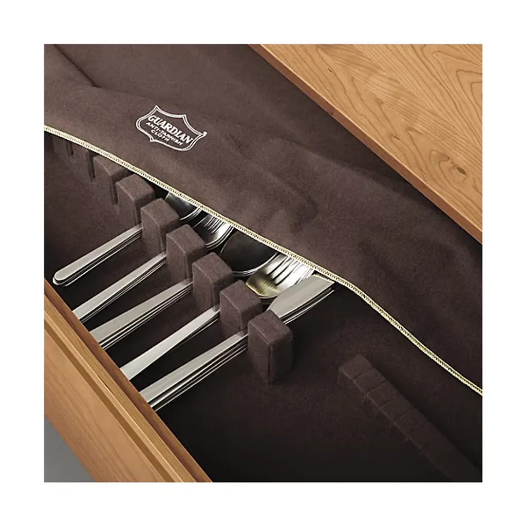 The mid-century inspired Catalina Cherry Five-Drawer/Two-Door Buffer offers plenty of storage for the modern dining room. This modernist buffet is divided with four drawers on one side and 1-drawer over a 2-door cabinet on the other. The drawers and doors feature soft-close hardware and sleek integrated pulls that run the length of each one. The cabinet area offers adjustable shelving while all drawers feature asymmetrical English dovetail joinery and fully finished interiors. Located above the two-door cabinet, a designated drawer provides tarnish-free, separated storage for silverware. Hand-crafted with impeccable quality and attention to detail, this buffet is bound to last through generations of use and enjoyment.