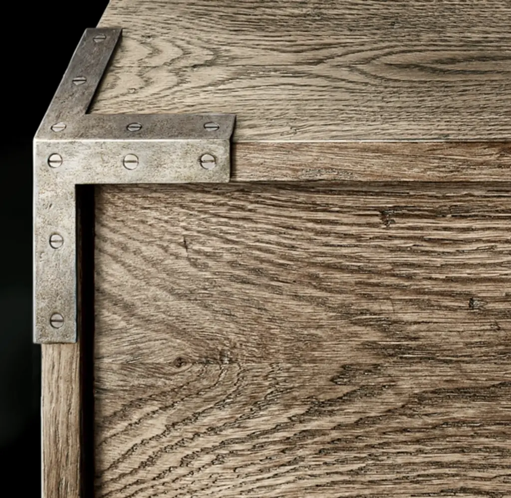 European campaign furnishings of the 19th century inspired our collection by the Van Thiels, echoed in the simple strength of the shapes, the rustic grain of the solid American white oak and the hand-cast metal hardware with corner brackets that accent each piece. Subtle details including tapered legs and concealed hinges lend refinement to the clean, forthright silhouettes.SHOP THE ENTIRE COLLECTION