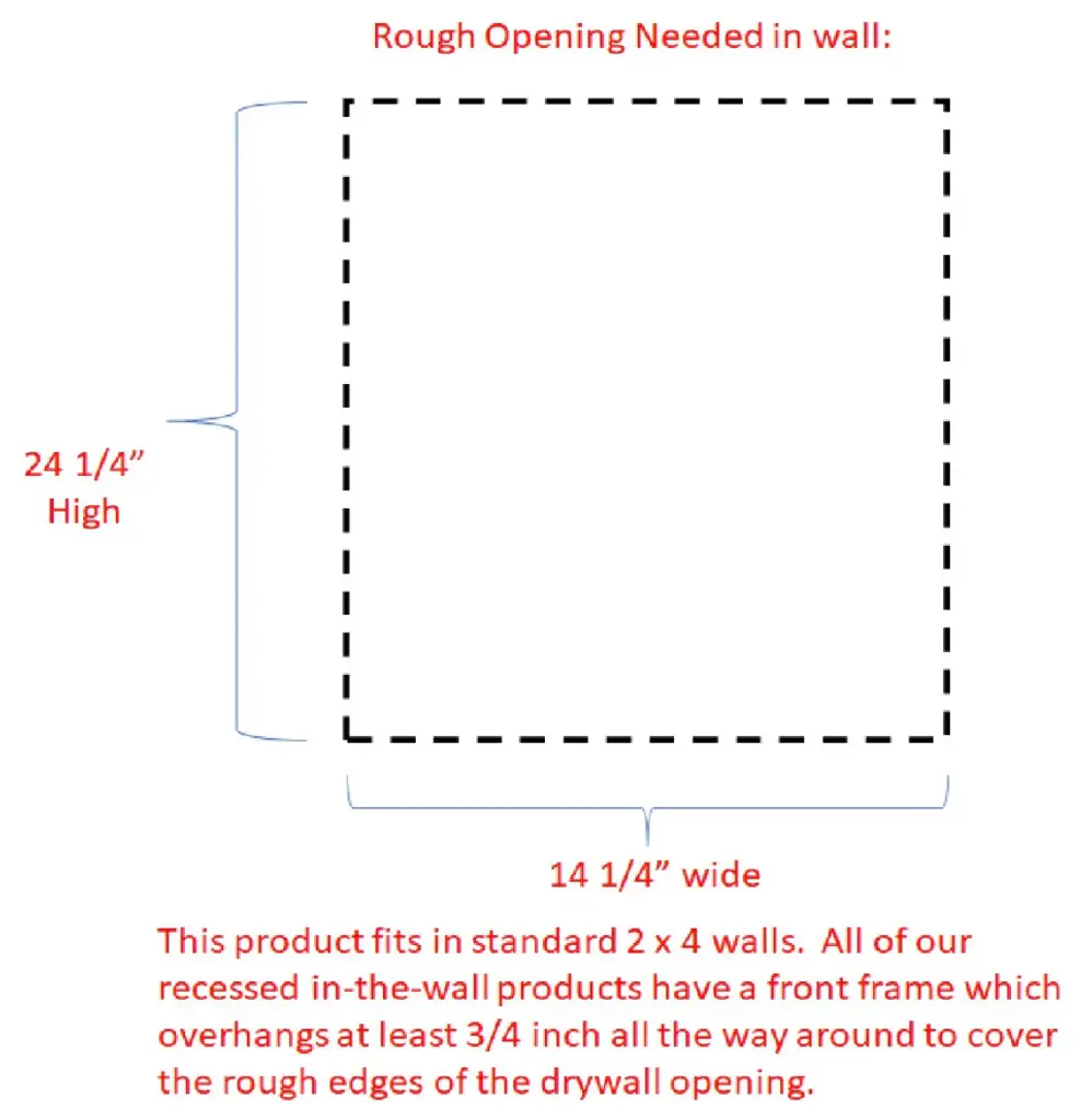 Perfect for any bathroom. Recesses in the wall between the studs, and simply screws to the studs on each side of the opening. Only the door is outside the wall. Fully adjustable glass shelves inside. Our unique, patented design of shelf supports keeps each shelf in place. Concealed hinges with soft close built in assures the door will never slam shut, but softly close on its own instead. Box is SOLID pine and the Beadboard panel style door is SOLID maple. White enamel finish. The box is 3.5" deep inside and gives you plenty of usable depth, but fits in standard 2x4 walls. Cabinet box is 12.5" wide inside. Door is reversible to open either Left or Right. Completely assembled! All you need to do is put one screw in each hinge to mount the door. Then insert it in the wall and screw it to the studs with included screws. If you are replacing a current cabinet, measure your wall opening! White plastic trim surround covers the rough edges of your opening up to 1/2" all around. Door covers the trim surround when closed so the only thing you see outside the wall is the door itself. White plastic trim surround covers the rough edges of your opening up to 1/2" all around. Door covers the trim surround when closed so the only thing you see outside the wall is the door itself. Made in Sarasota, FL.